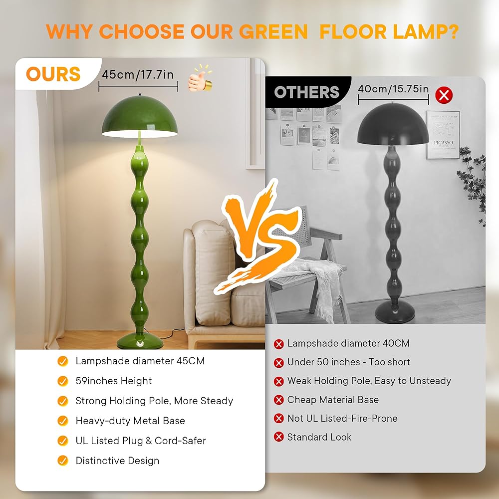 • 【مصباح أرضي على طراز الكريمة الإبداعية】 هذا المصباح الكلاسيكي في منتصف القرن الحديث يحتوي على منحنيات ناعمة ومثالية. تقنية قطع الأشكال الرائعة مع تقنية تلميع وطلاء الخبز ، مما يخلق مظهرًا سلسًا خطًا ، وقوس مصباح الموجة ، والمظهر الأخضر ، والأشكال الأنيقة والأرواح الرجعية. يمكن دمج هذا التصميم البسيط مع أي زخرفة ، ويبدو أكثر من راقية وجوية.