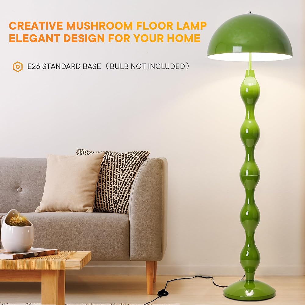 مصباح أرضي فريد من نوعه ، مصباح الفطر الأخضر الإبداعي مصباح واقف مع ظلال حديدية عريضة 45 سم ومفتاح القدم ، ضوء الأرضيات الحديثة لغرفة المعيشة ، غرفة نوم ، مكتب ، زاوية ، 3 درجات حرارة ملونة