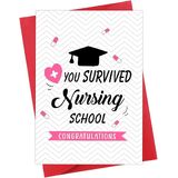 【بطاقة هدايا التخرج الممرضة المضحكة】: طبعت مع "أنت نجت من مدرسة التمريض تهانينا" ، بطاقة تخرج مضحكة لخريجي التمريض طالباتها للنساء الرجال
