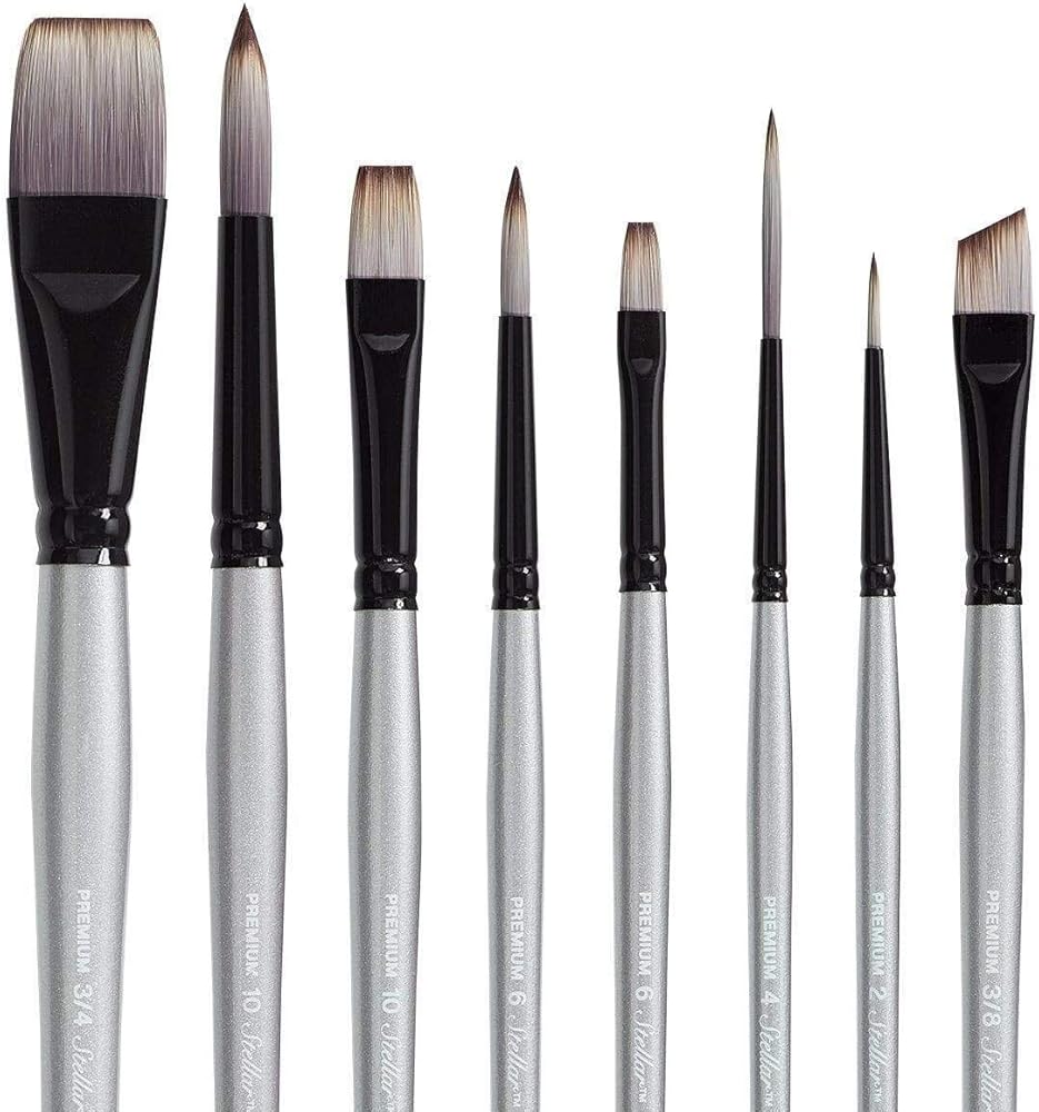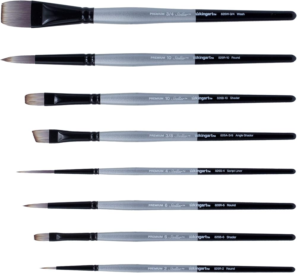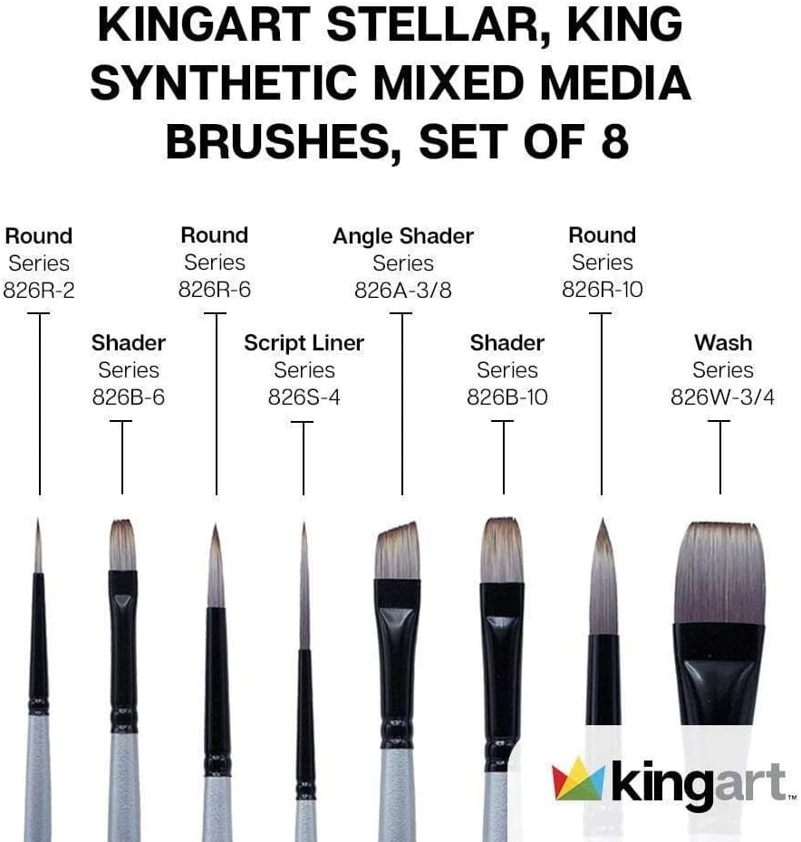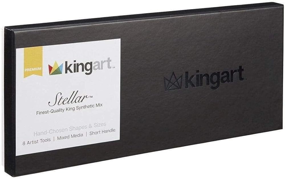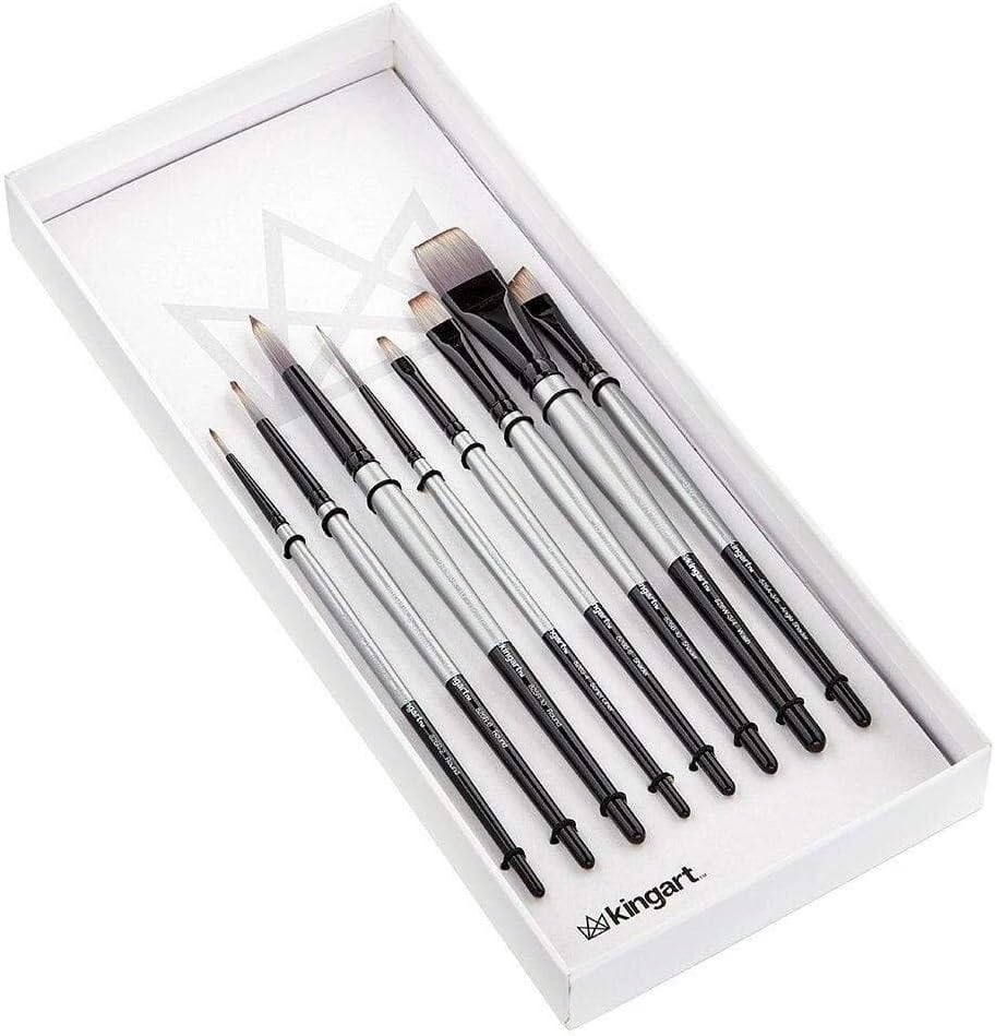 Kingart Stellar Series Premium Synthetic Blend Artist Multimedia Artists ، أدوات الطلاء للزيت ، والأكريليك ، والألوان المائية والغواش ، وصندوق الهدايا ، ومجموعة من 8 فرشاة الطلاء