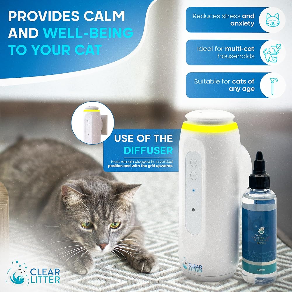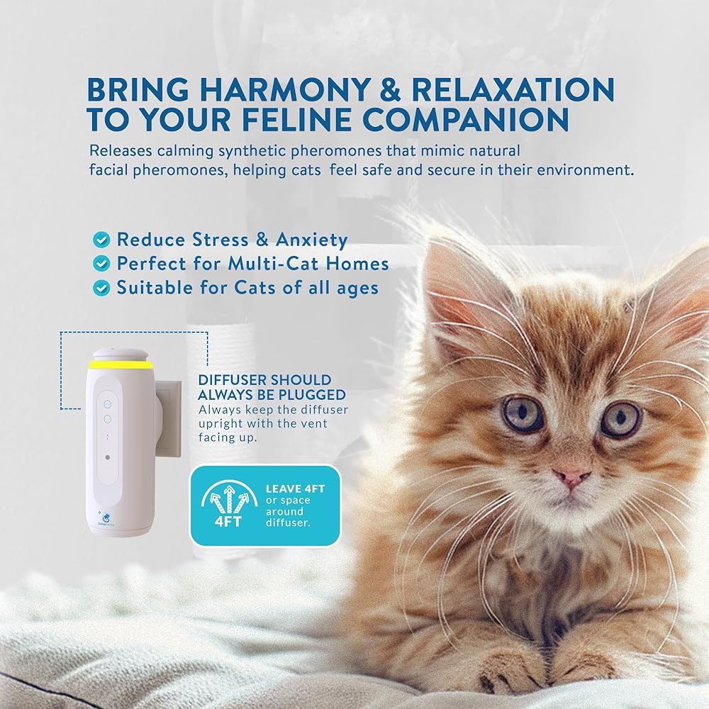 Cat مهدئ فيرومون ناشر مع تحكم البلوتوث للأسر متعددة القطط-في ملء 100 مل. الإجهاد الفعال والتخفيف من السلوك ؛ تصميم سهل المكونات لتقليل القلق والعدوان القطط