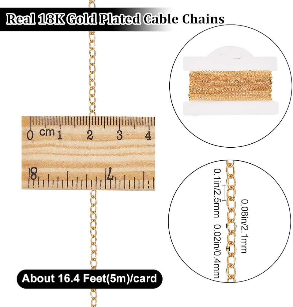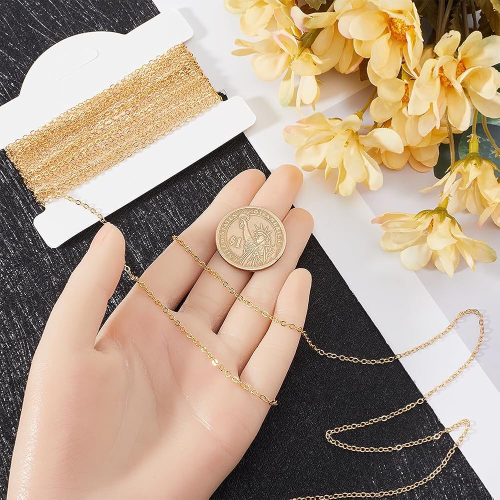 [5M/16.4 قدم سلسلة الكابلات المسطحة]: سلسلة الكابلات المسطحة الذهب 5M طويلة بما يكفي لصنع المزيد من المجوهرات ، مثل القلادات ، الأساور ، الخلخاة ، إلخ. لا تتردد في خفض الطول الذي تحتاجه عند DIY.