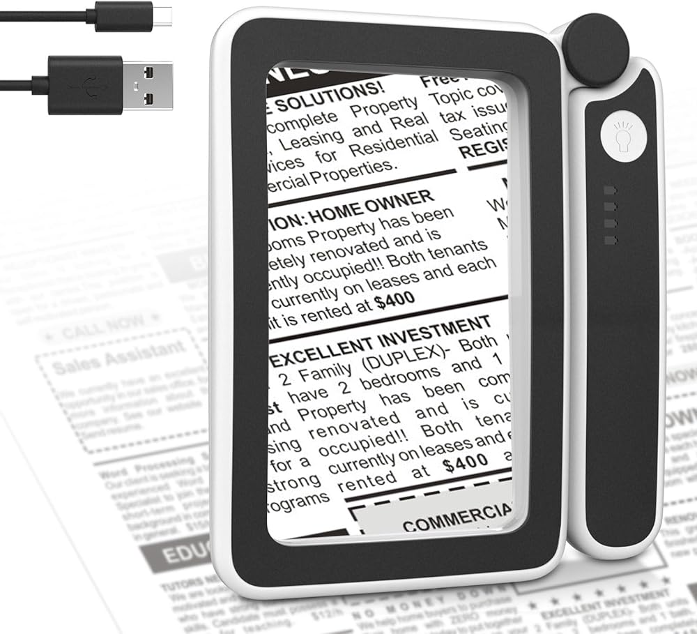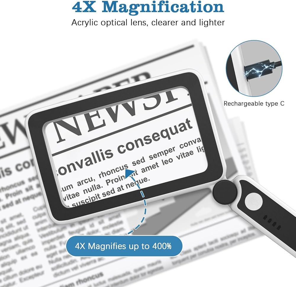 4 × عدسة زجاجية صافية القراءة-هذا الزجاج المكبر المضاء مع ورقة بصرية أكريليك واضحة للغاية ، مقاومة للخدش ومقاومة للانهيار ، أخف وزناً من الزجاج ، حتى تكبير 4x ، ويوفر صورًا واضحة وخالية من التشويش لتعزيز القراءة ومساعدة كبار السن والأشخاص الذين لديهم رؤية منخفضة بسهولة للوصول إلى التفاصيل الدقيقة للغاية في الكتب الصغيرة ، والخدش ، والمجلة ، والتصوير ، والمخططات ، والمخاطر ، زجاجات ، ومجموعة واسعة من الحرف اليدوية.