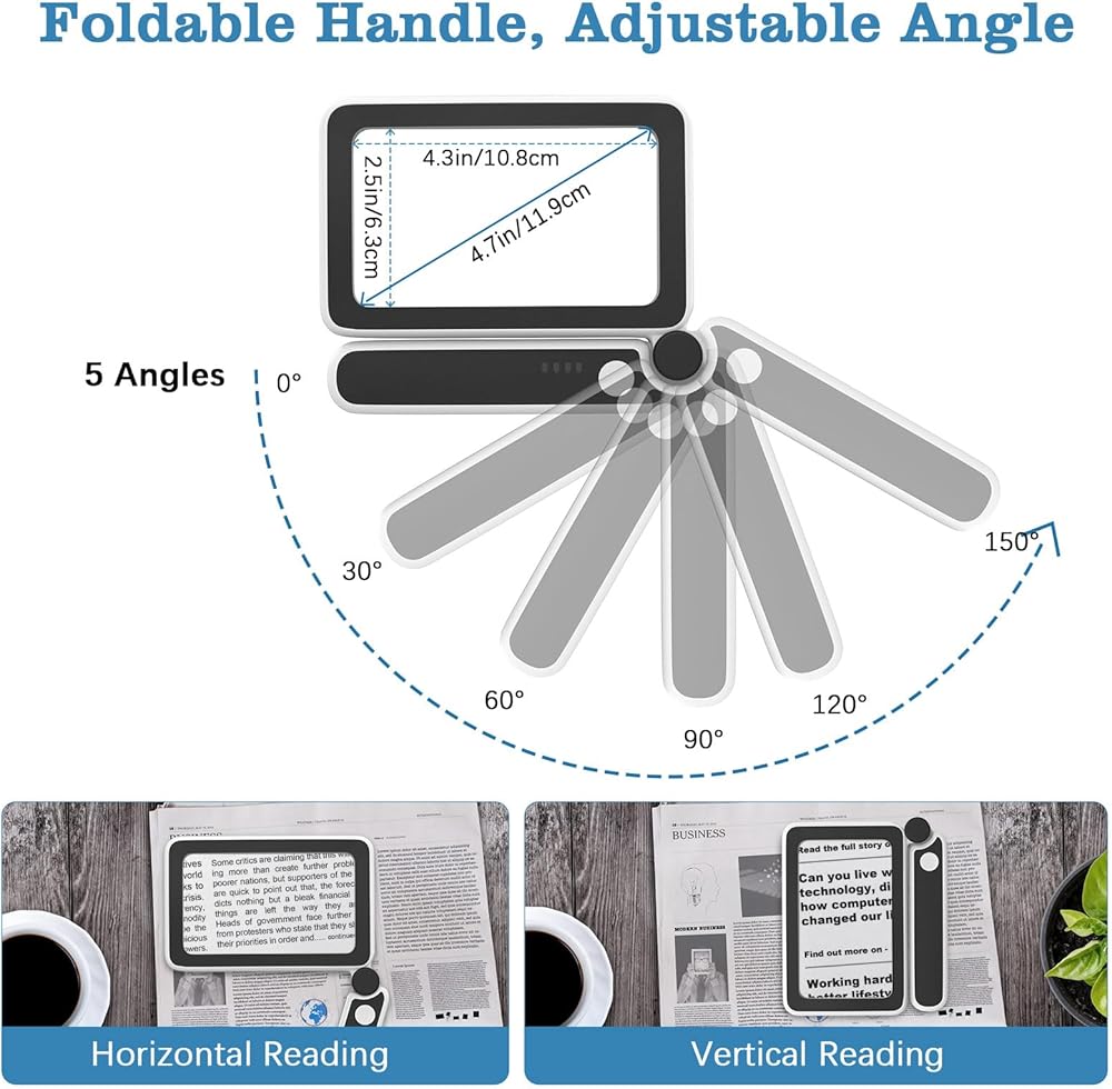 Moko مكبرة الزجاج للقراءة ، 4x قابلة لإعادة الشحن الكامل صفحة الكتب ، والزجاج المكبرة مع أوضاع 3 ، قابلة للطي القراءة مكونة من كبار السن الرؤى المنخفضة ، الأسود