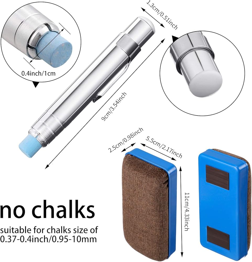 حامل عصا الطبشور جيد يمكنه أن يحافظ على نظافة يديك ويمنع الطبشور من لمس بشرتك مباشرة، ويحمي يديك. يتميز ممحاة اللوح الأسود بلا غبار بامتصاص فعال لغبار الطباشير، وسهل الاستخدام، ويوفر حماية موثوقة.