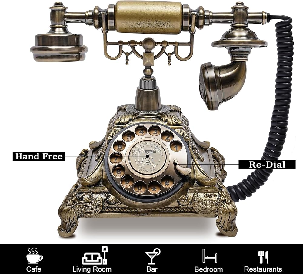【هدية مثالية وديكور.】: يجسد هذا الهاتف المحبب تمامًا الهاتف الكلاسيكي على الطراز الأوروبي ، ويتميز بمزاج أنيق ، وبراعة استثنائية ، وجمالية من المؤكد أنها ستستكمل أي إعداد ، سواء كان فندقًا أو بارًا أو مكتبًا أو منزلًا. إنها ليست مجرد إضافة أنيقة وحنين إلى أي ديكور ، ولكنها تقدم أيضًا هدية رائعة لأولئك الذين يقدرون الأسلوب القديم أو معجبون بالمظهر الرجعية.