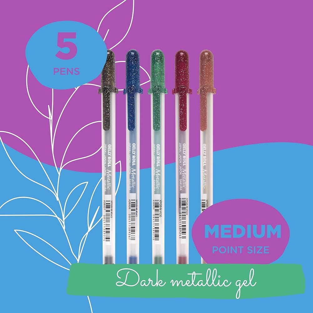 SAKURA Gelly Roll Metallic Gel Pens - Dark Metallic Ink - Medium Line - 5 Pack & Gelly Roll Metallic Gel Pens - Colored Metallic Ink - Medium Line - 10 Pack