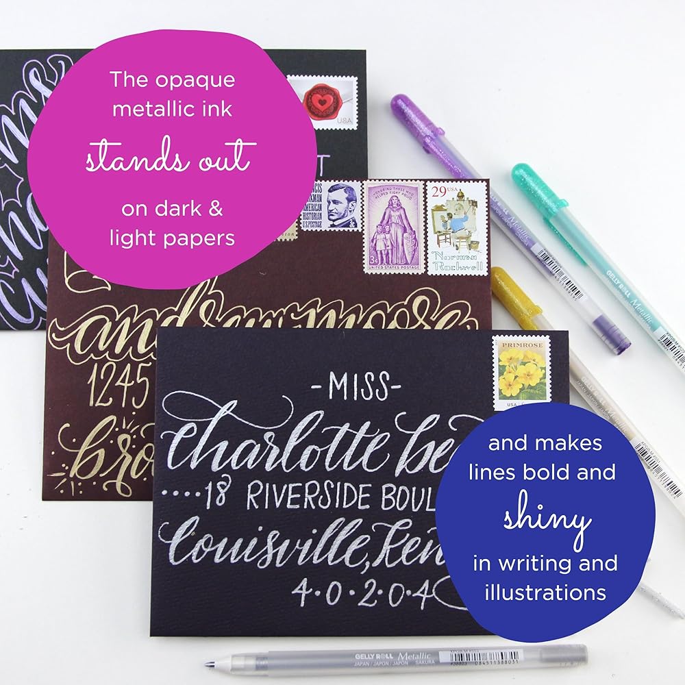 Metallic, Opaque Colored Ink: Gel pens have metallic colored ink that flows creamy smooth onto dark and light paper