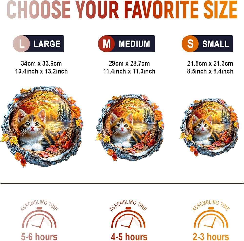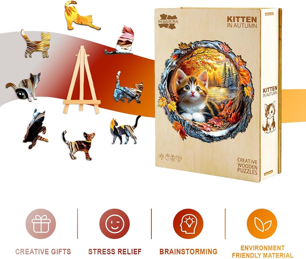 اللغز الخشبي القط: يستلهم هذا اللغز الخشبي من الطبيعة ، ويهدف إلى عرض مناظر طبيعية مختلفة من التأثير ثلاثي الأبعاد مع اللغز المسطح. لا توفر التصميمات الأصلية المرسومة باليد تجربة حل الألغاز فحسب ، بل تعمل أيضًا كديكور منزلي فريد