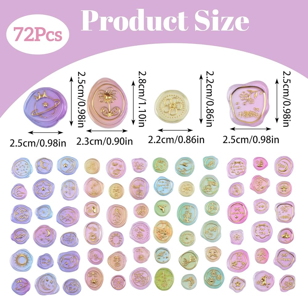 【PACKAGE INCLUDE】You will receive 72Pcs of transparent dried flower wax seal stickers, available in 6 series, each with 12 different patterns of stickers. You can refer to Figure 2 for the approximate size of the stickers.