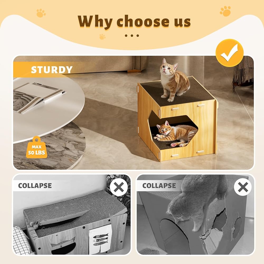 متينة ومتينة - لن تنهار معها من الخشب عالي الجودة ، هذا المنزل من الورق المقوى للقطط والقطط ، وهو خيار رائع بين خدوش القطط للقطط الداخلية ، متينة وقوية ، مصممة لتحمل حتى الخدش الأكثر قوة. يضمن بنائه القوي أنه لن ينهار مع مرور الوقت ، مما يوفر استخدامًا طويلًا لقطتك.