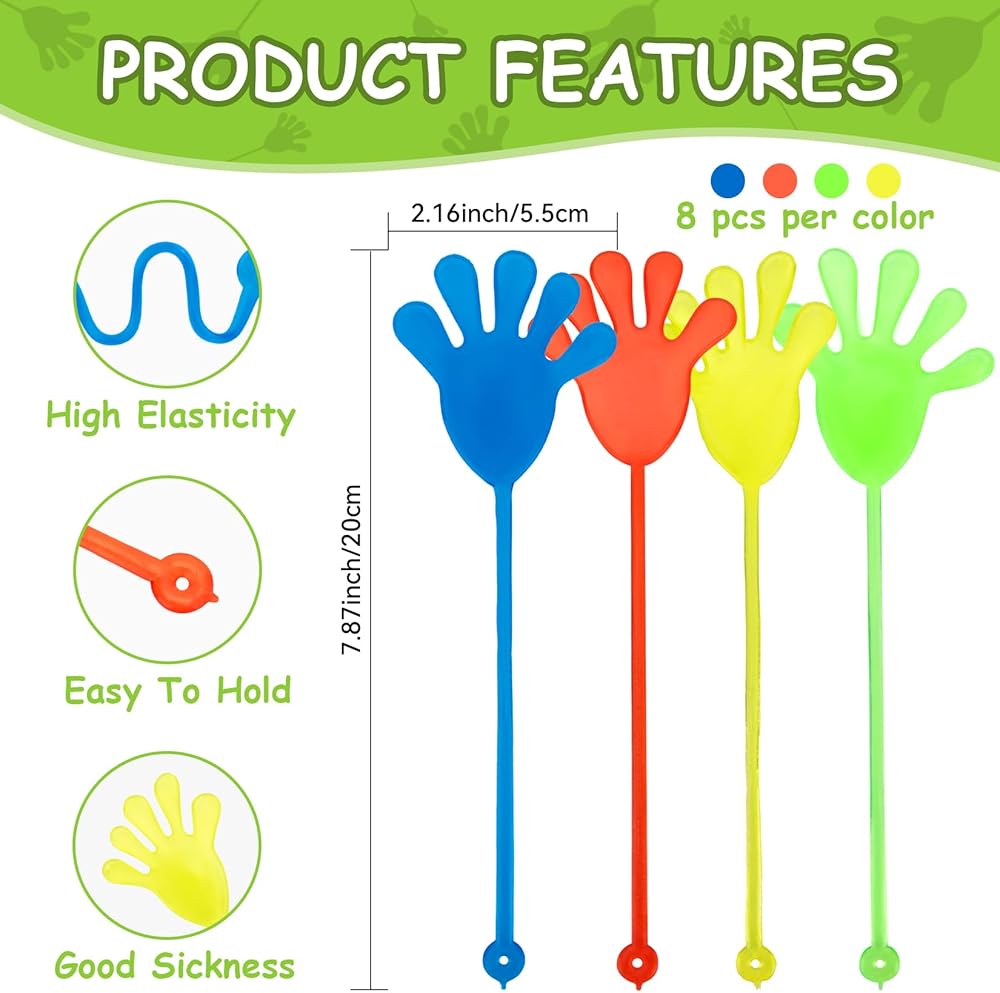 Strong Adhesion: sticky hands for kids, Slap Sticky Hands Toys are made with a special material that is highly adhesive, these fun trinkets stick to walls, ceilings, or other flat surfaces when thrown and then slowly slide down