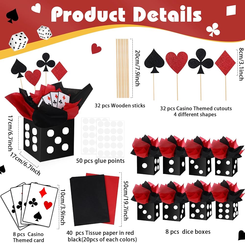 Introducing our casino themed centerpieces sets for tables, a charming addition to your events that would express your like for the casino night. The multicolor design of casino themed centerpieces party supplies adds a fun and joy, easily seize the attention of people