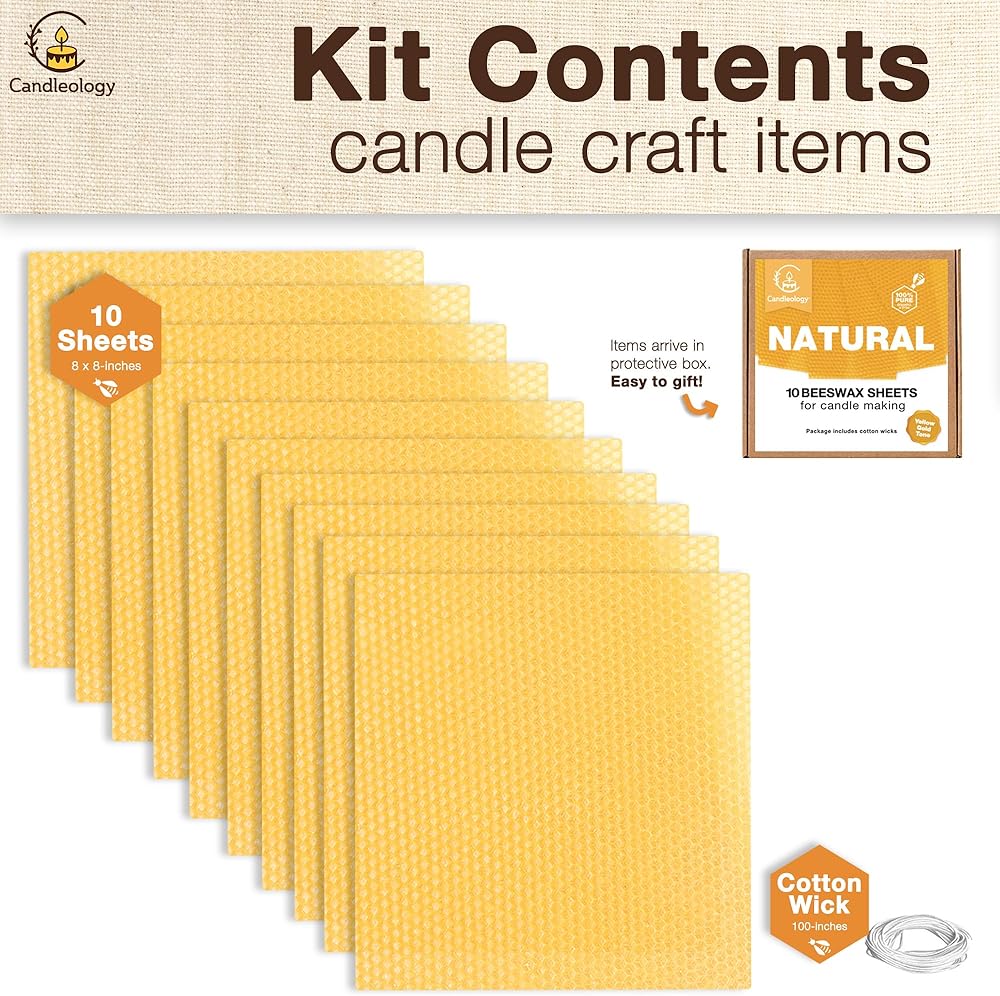 • What's Included? This Candleology candle making kit includes ten (10) Natural Grade B beeswax sheets, 100% cotton wick and easy to follow instructions. We are passionate about candles and excited to introduce the totally natural and safe art of making beeswax candles!