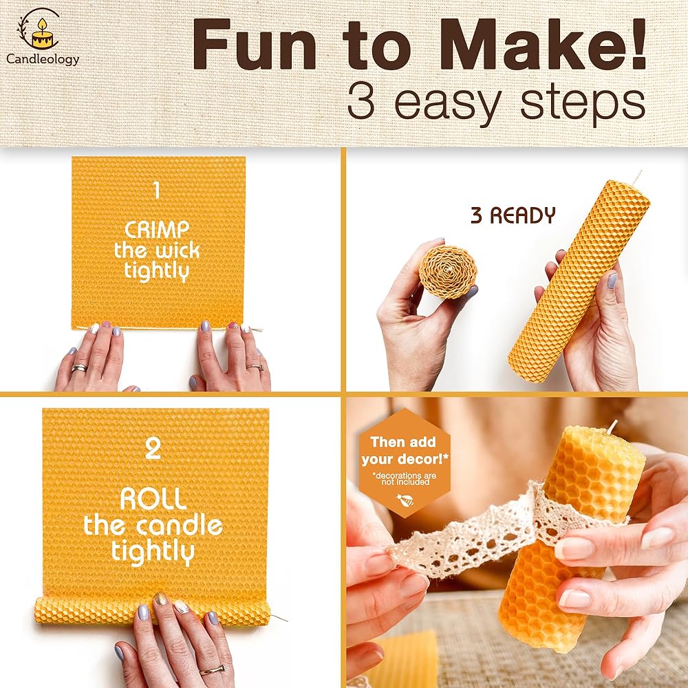 • Beeswax Candle Rolling Sheets - Our all-natural beeswax candle kits are fun and safe to use. You don't need to melt wax or use any special equipment, as this beeswax is pre-pressed into flat individual sheets for easy rolling!