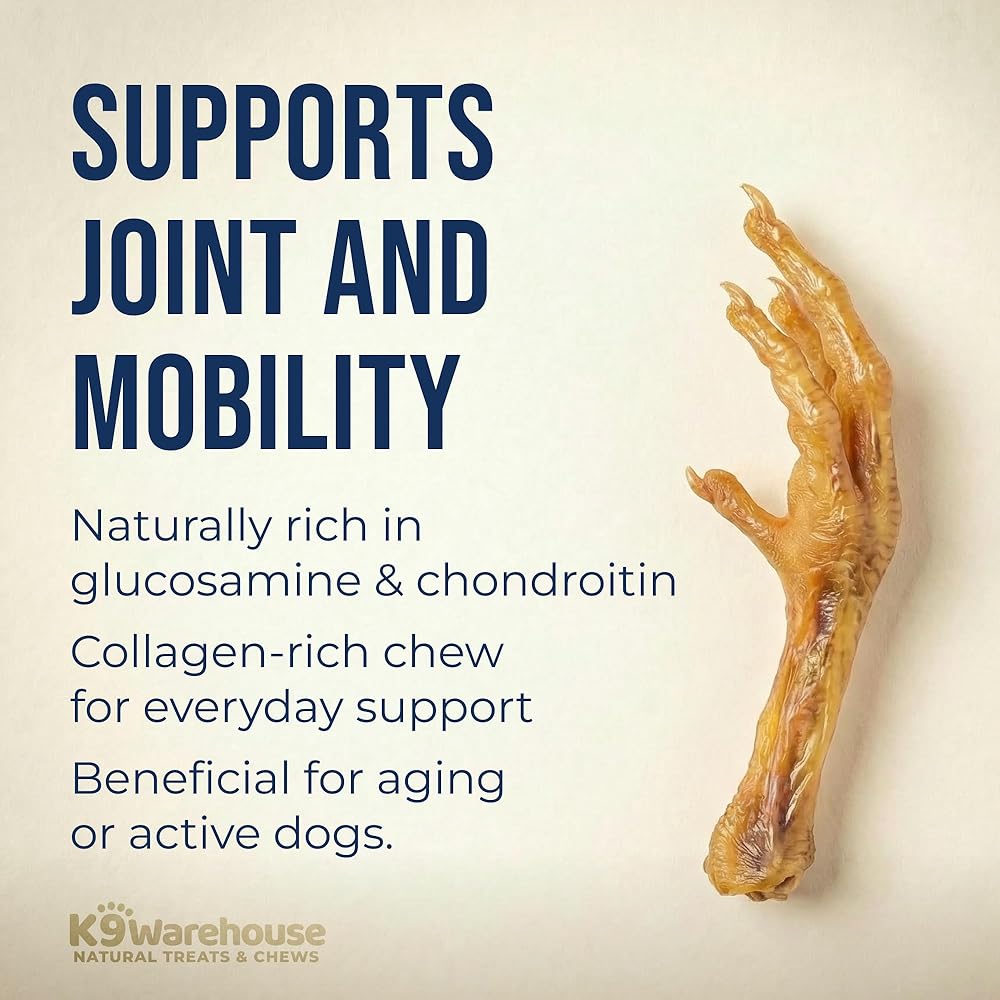 Introducing K9warehouse's Chicken Feet for Dogs, a high-protein, low-calorie treat that your furry friend will absolutely love. These single ingredient dog treats are made from 100% natural chicken feet, ensuring a healthy and wholesome snack for your pet. Not only are they delicious, but they also offer numerous health benefits such as joint support and bone health, thanks to their naturally high content of glucosamine and chondroitin. Our chicken feet dog treats are dehydrated to perfection, preserving all the essential nutrients while providing a satisfying crunch that dogs crave. They are ideal for all dog sizes and breeds and can also serve as a great dental chew, helping to clean your dog's teeth as they gnaw. We source our chicken feet from trusted, organic farms in the USA, ensuring that your pet is getting the very best. For a treat that's safe, nutritious, and irresistibly tasty, choose K9warehouse's Chicken Feet for Dogs.