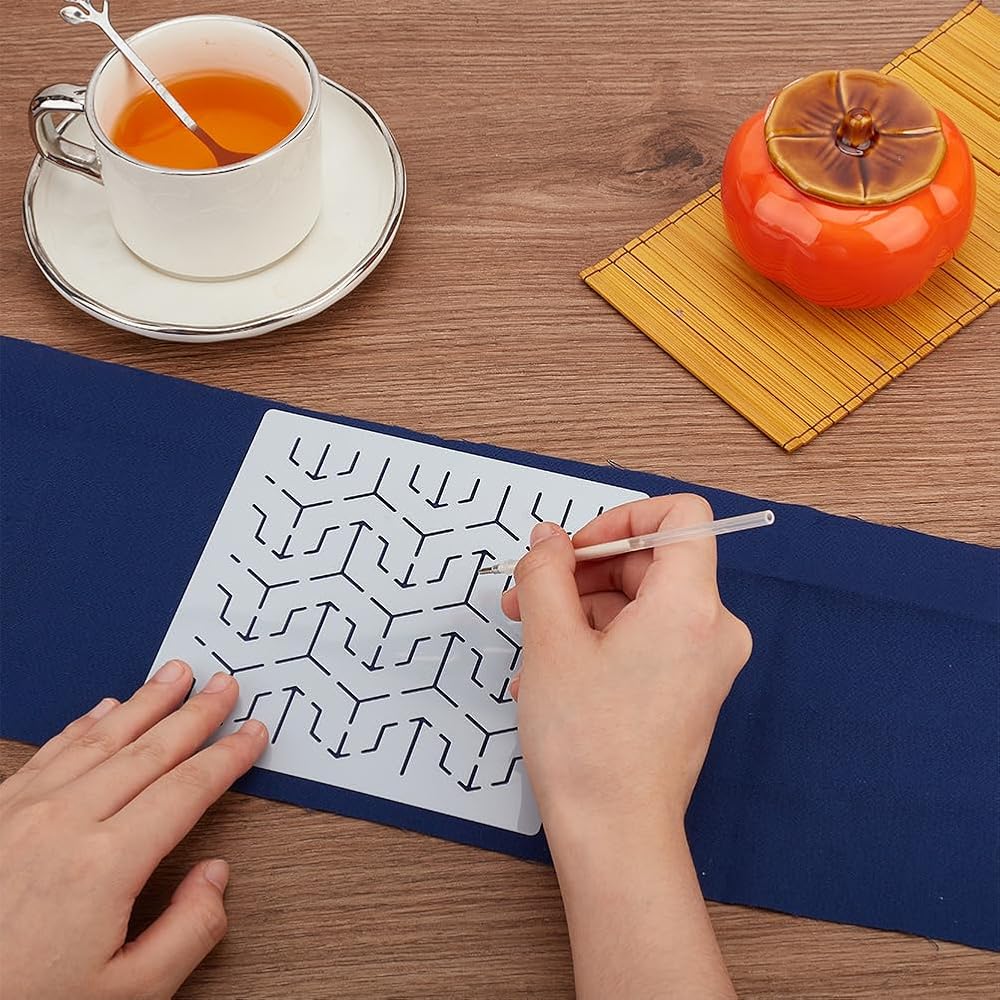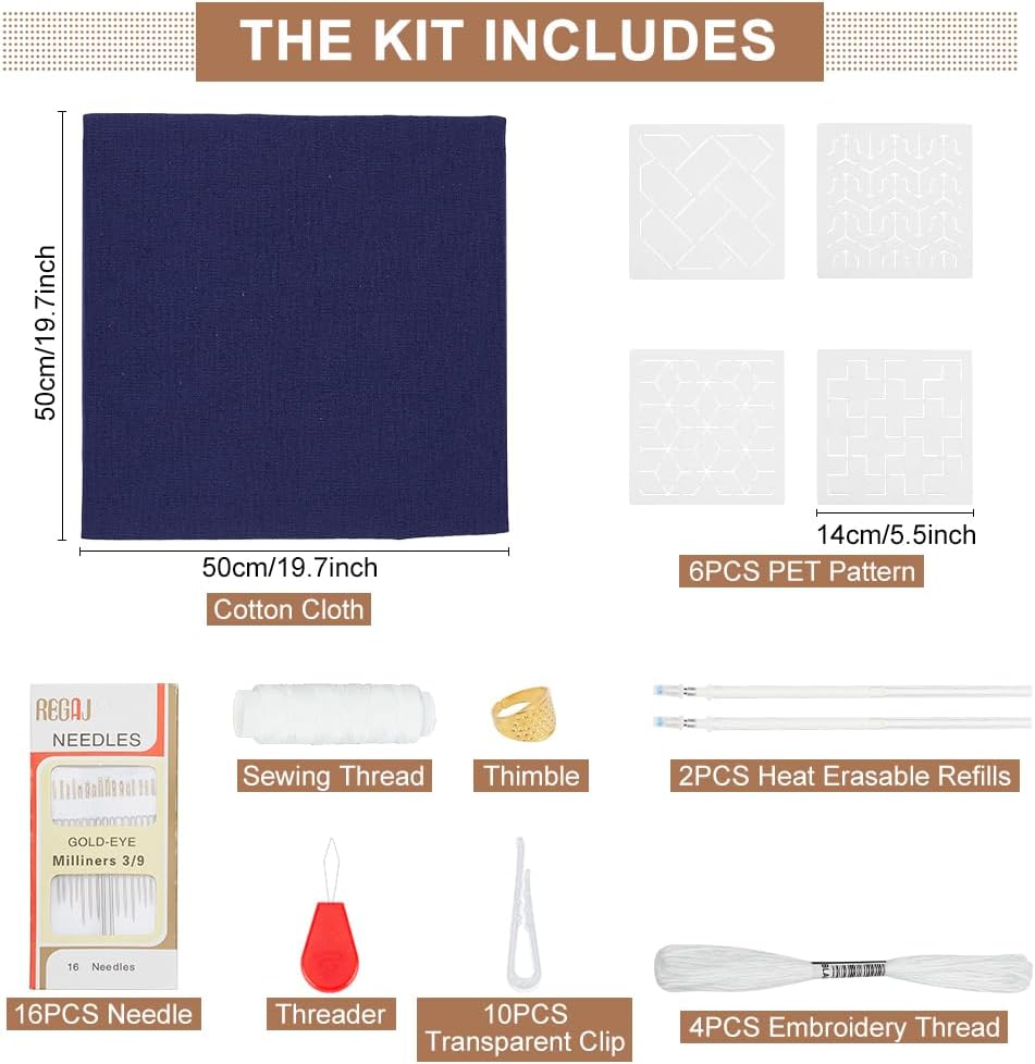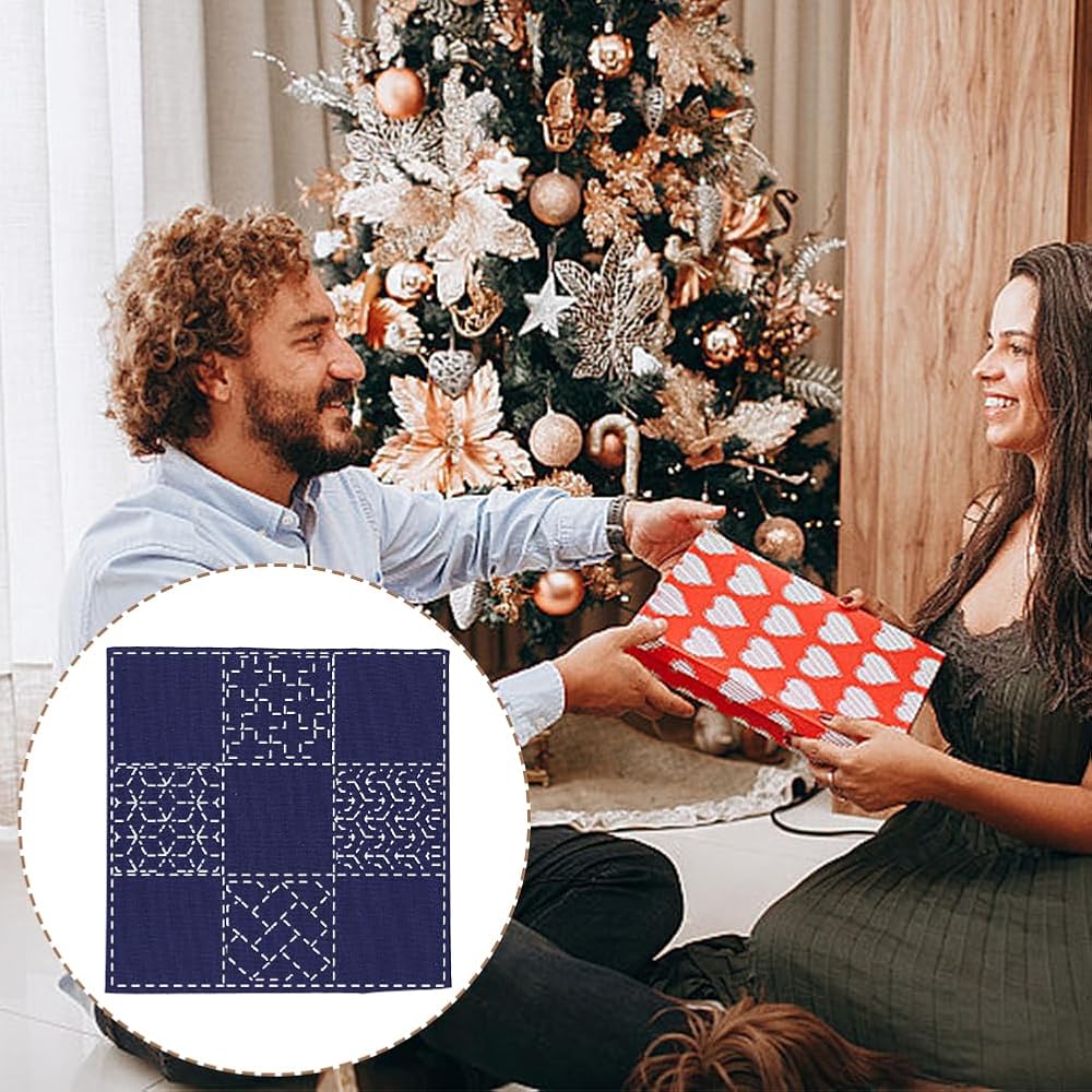 مجموعة Webeedy DIY SASHIKO مع قالب نمط SASHIKO الياباني التقليدي البحرية الأزرق النسيج التطريز خياطة SASHIKO TABLE