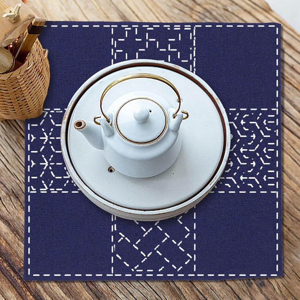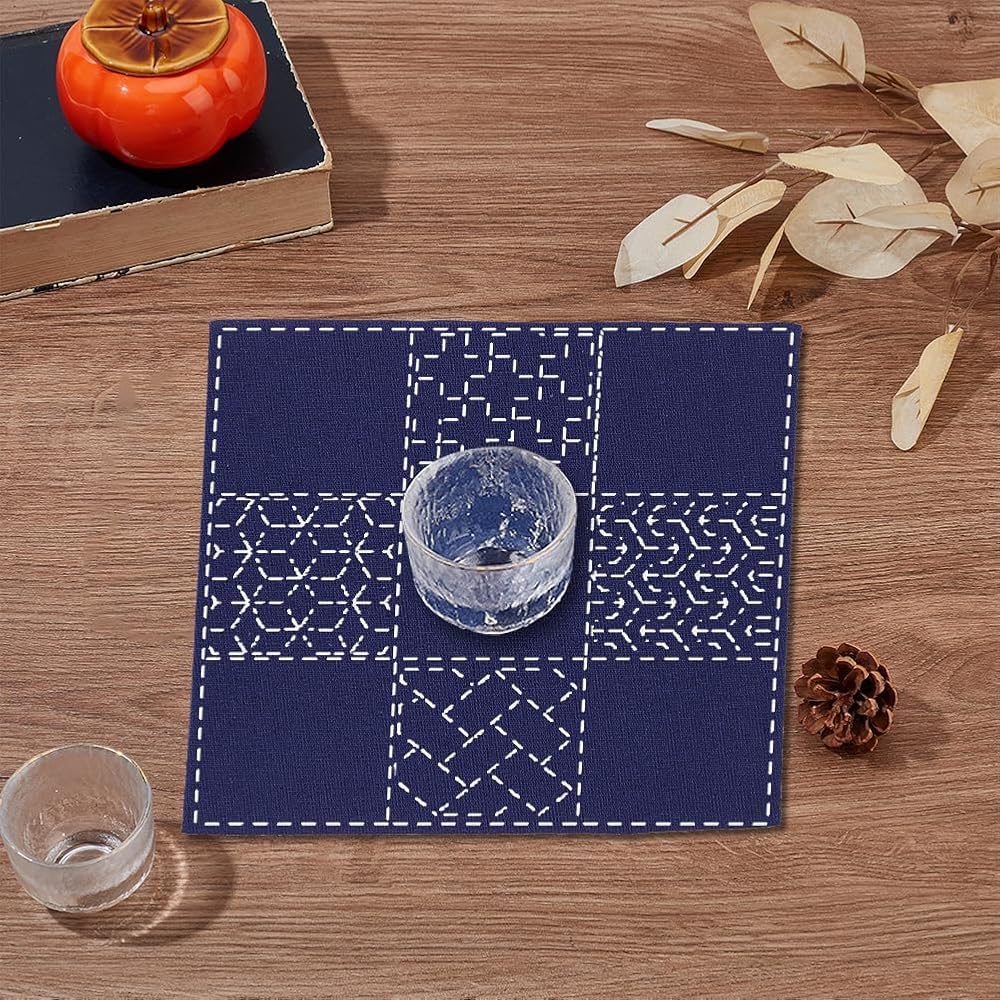 Traditional sashiko embroidery placemat kit for starters crafts making. All necessary tools are included for your sashiko making.