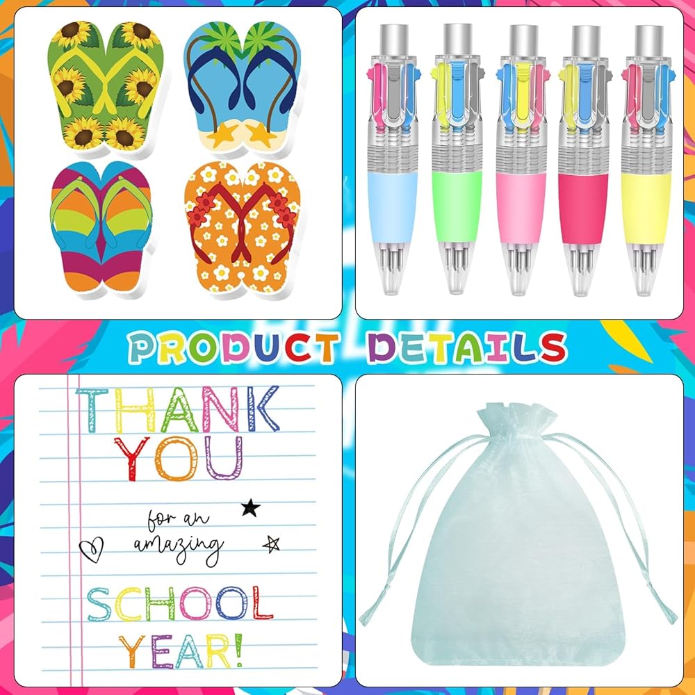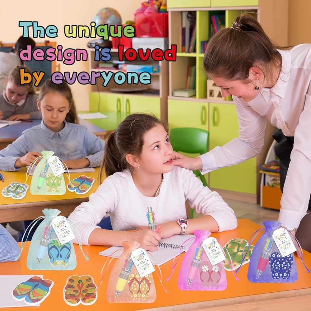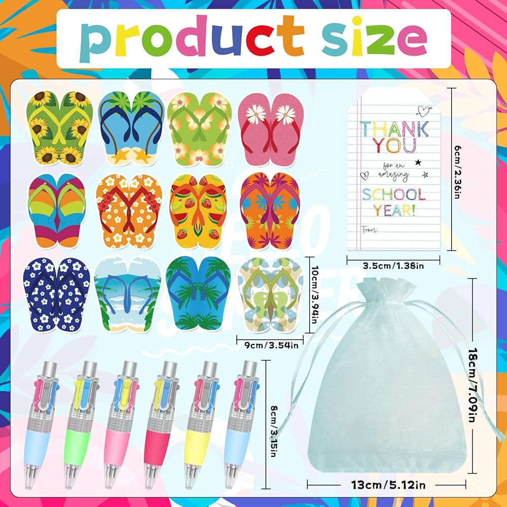 • Product Include: This 48 - piece stationery set has it all; There are 4 - in - 1 ballpoint pens, 12 flip flop sticky note pads (30 sheets each), thank - you cards, and organza bags; Whether for personal use, sharing with classmates, or gifting to teachers and coworkers, it meets every need