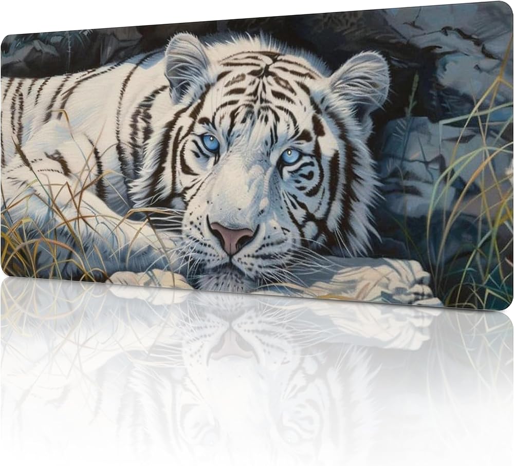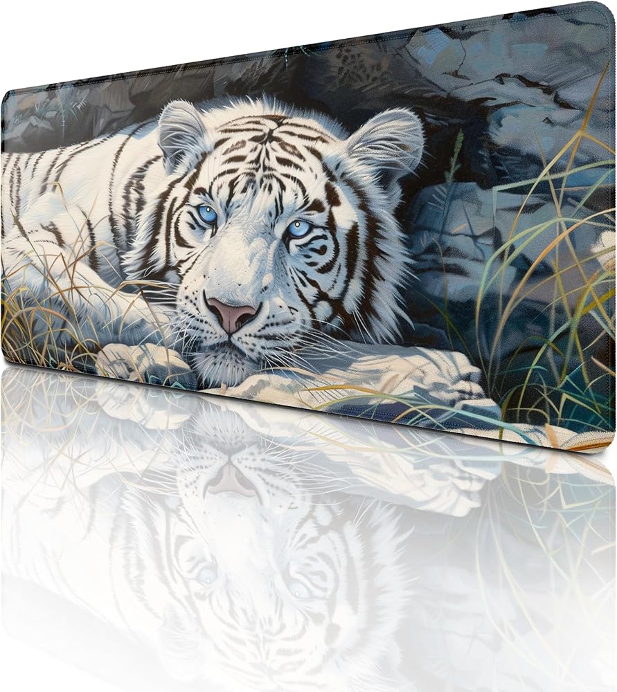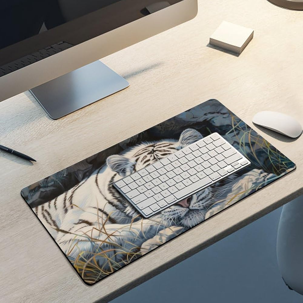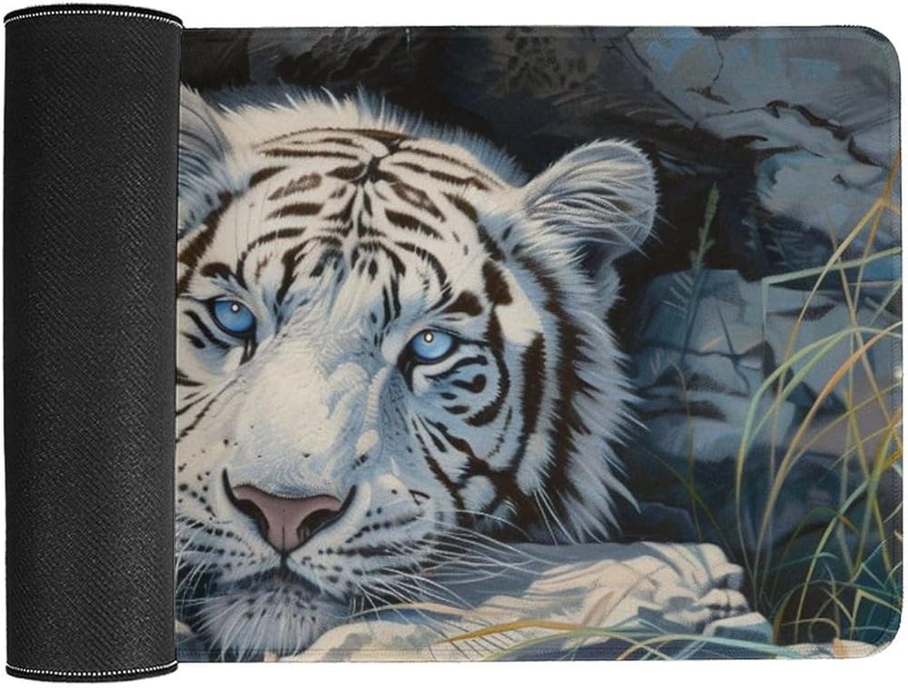 أبيض النمر الكبير فأر الماوس الحيوانات البرية حيوانات موسباد جمالية بارد حصيرة المكتب للوحة المفاتيح ومطاط لوحة الكمبيوتر غير قابلة للانزلاق للألعاب لوازم المكاتب المنزلية للمكتب 23.6 × 11.8 بوصة