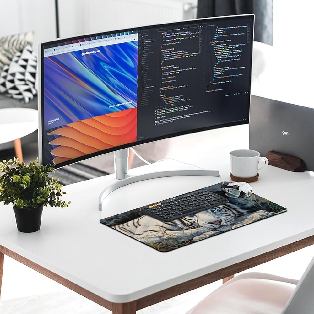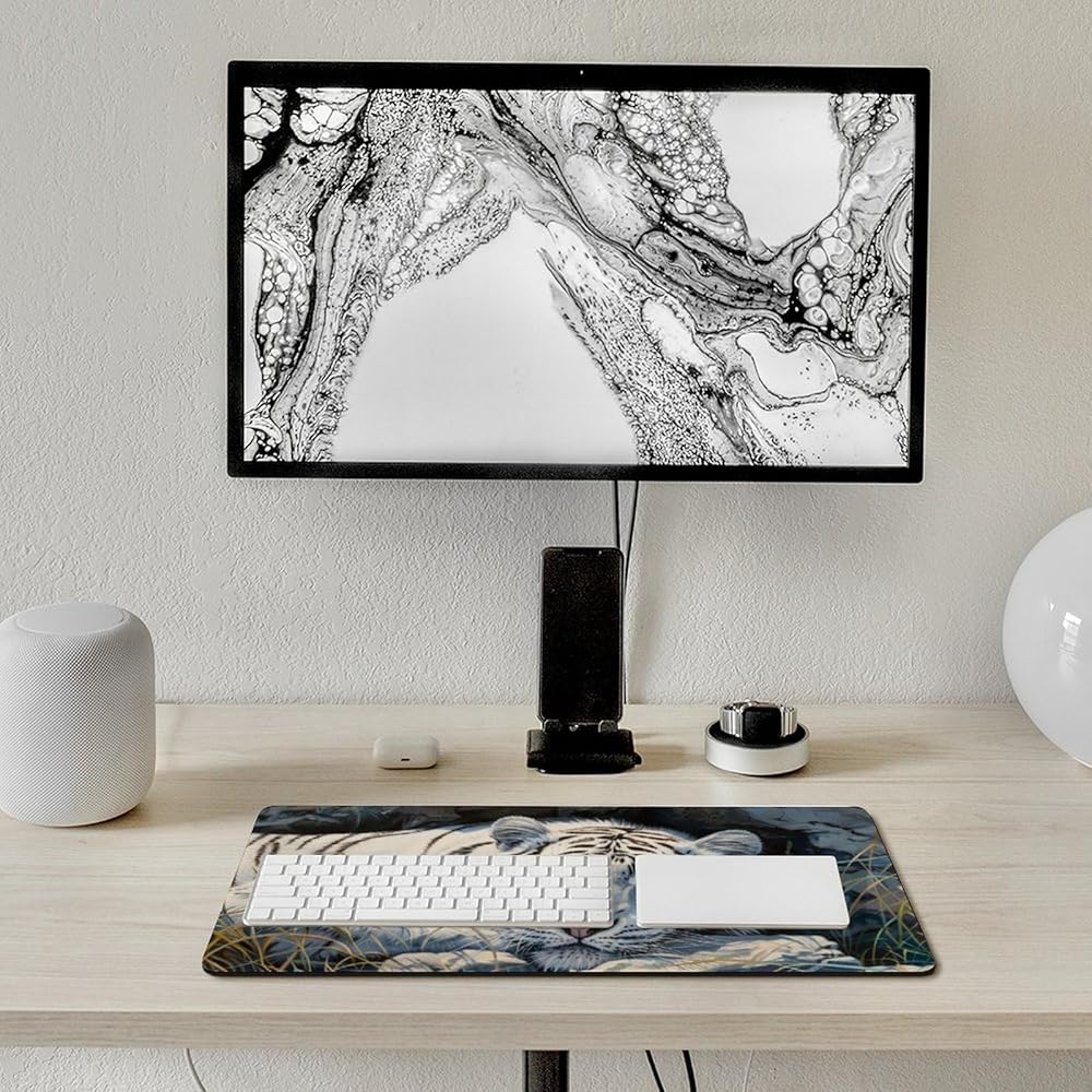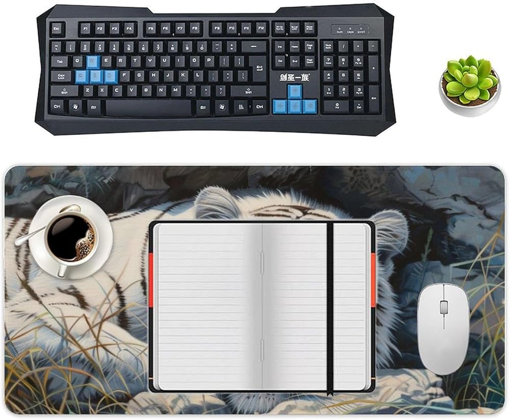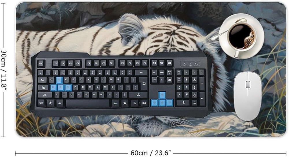 أبيض النمر الكبير فأر الماوس الحيوانات البرية حيوانات موسباد جمالية بارد حصيرة المكتب للوحة المفاتيح ومطاط لوحة الكمبيوتر غير قابلة للانزلاق للألعاب لوازم المكاتب المنزلية للمكتب 23.6 × 11.8 بوصة