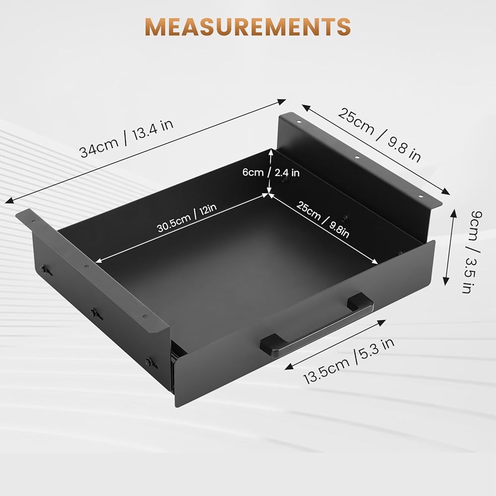 الدعم القوي 12 رطلاً لأدراج المكتب: تم تصميمه باستخدام فولاذ متين ، ويمكن لهذا الدرج المكتبي الاستيلاء على ما يصل إلى 12 رطلاً من المواد ، مع الحفاظ على أمراضك آمنة وبعيدة عن الأنظار. تضمن البناء الصلب وآلية الانزلاق السلس إعدادًا قويًا خاليًا من التمايل.