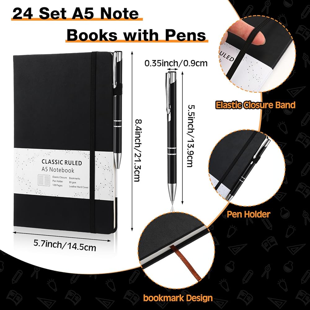 Thanks to its versatile design and usability, our black ruled notebook with pens is a marvelous choice for multi purpose use. Suitable for students, professionals, writers, and anyone who appreciates good writing tools.