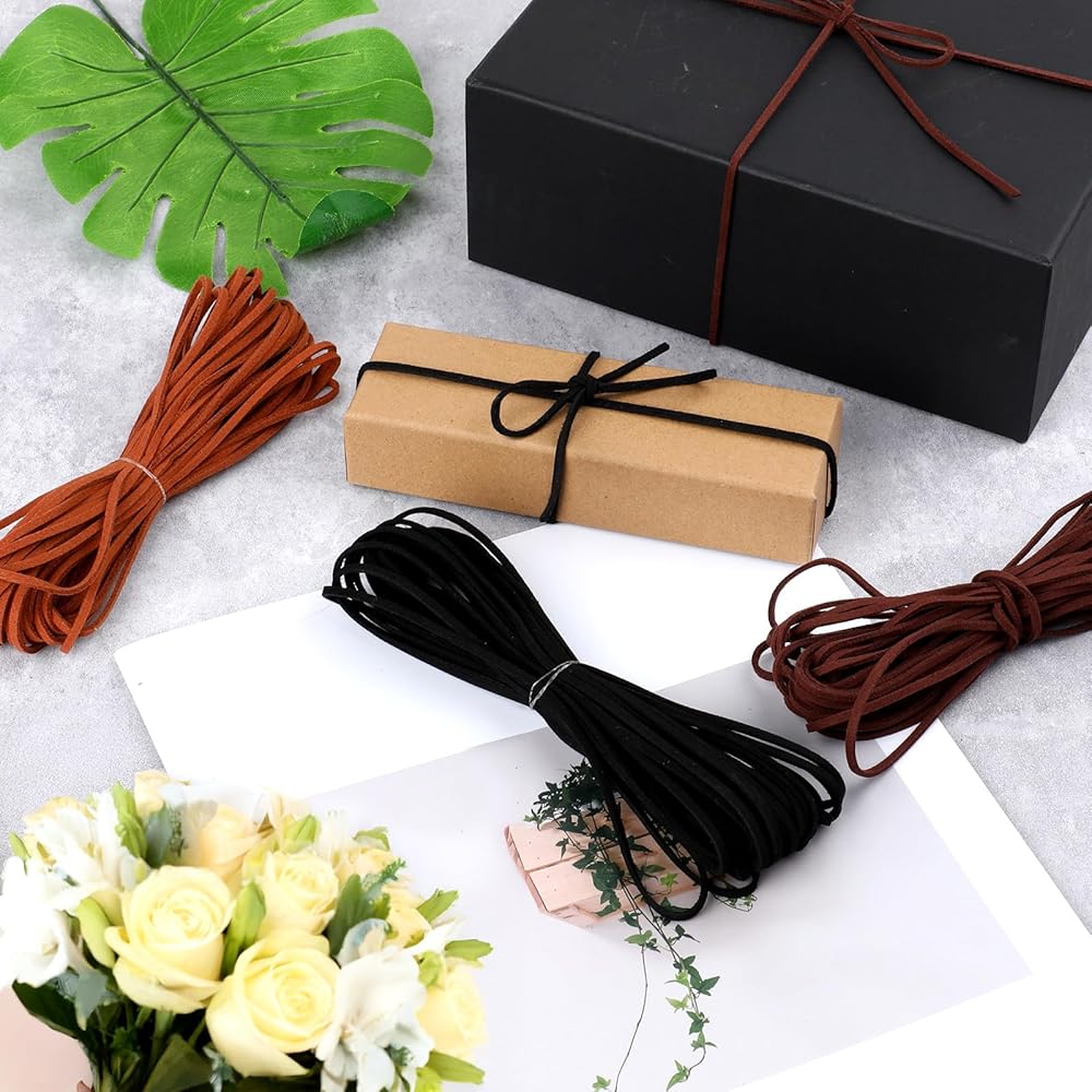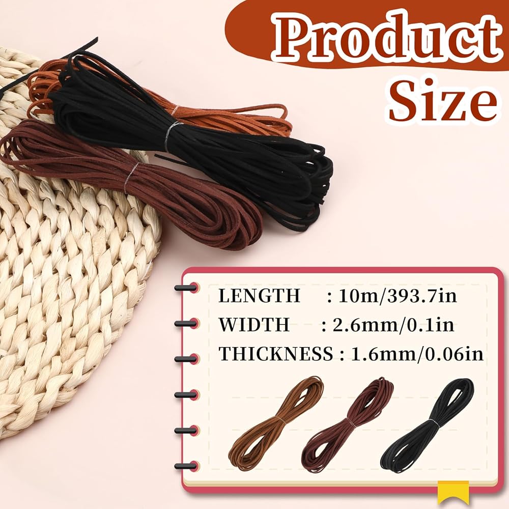 Size details: Each roll of leather strings for crafting is 10 yards long, 2.6 mm/0.1 inches wide, and 1.6 mm/0.06 inches thick. The length and width are enough to meet your needs, suitable for decorative weaving, beading, wrapping, etc