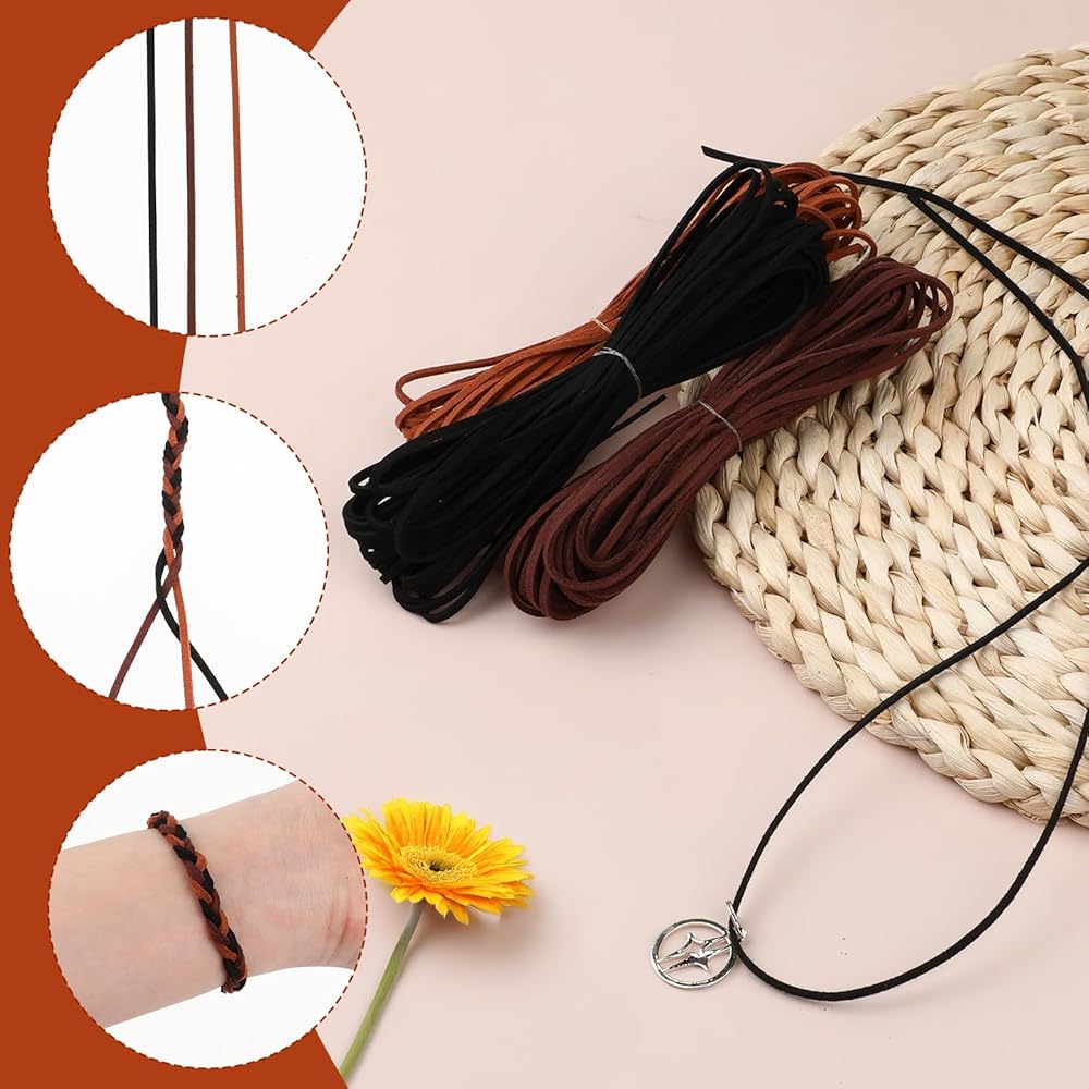 "Reliable material: Our flatleather cord is made of high-quality polyester, which is soft and comfortable, gives you a good touch, and is not easy to break. Leather stripscan be use for a long time and is easy to operate when you need to tie knots, loops, and weave