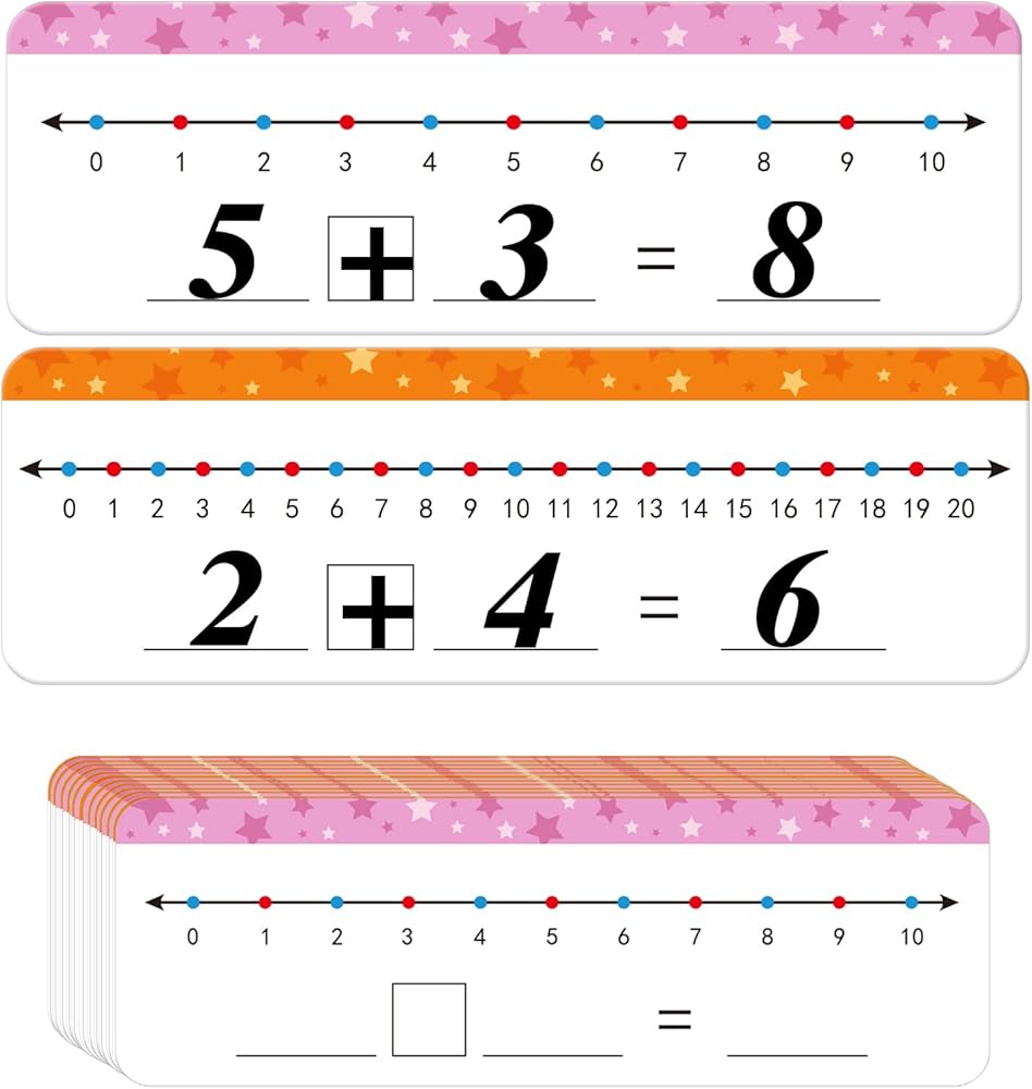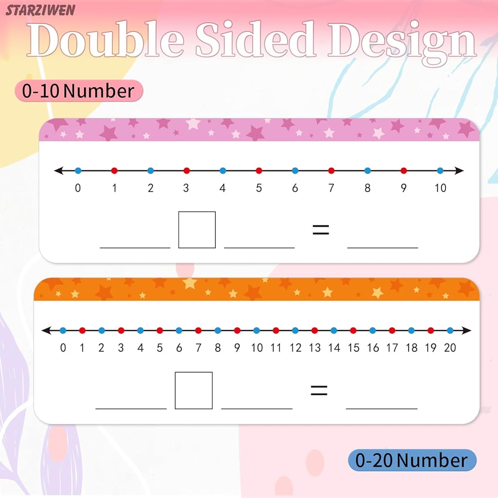 Double Sided Design: The dry erase board is double sided printed, it features 0-10 number line on one side and 0-20 number line on another side. Students can choose any side according to their needs. Both sides have a blank and writable equation, which can help students consolidate knowledge and strengthen their capacity base.