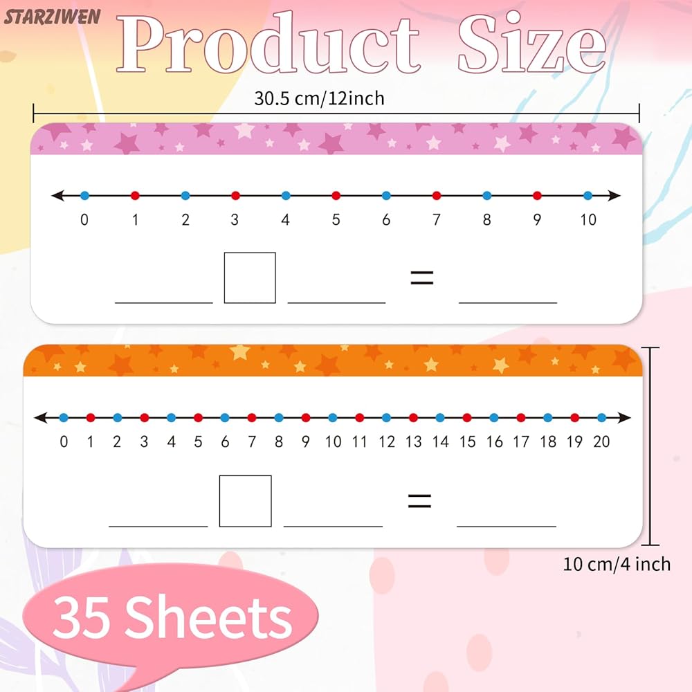 • Make Math Interesting: It comes with 35 packs number line boards, sufficient quantity to meet various needs. Each board measures about 12” x 4”, enough writing space for all kinds of educational, game or entertainment purposes. The number line board is a fun and memorable way to teach students the arithmetical operation. An ideal learning tool for students to practice basic math skills.