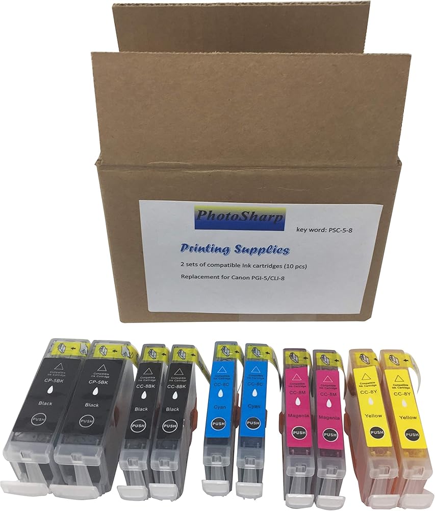 10 خرطوشة حبر طابعة Canon PIXMA MP610 متوافقة مع 2 من كل Canon PGI-5/CLI-8 (PGBK/BK/C/M/Y) أسود/سماوي/أرجواني/أصفر لطابعة PIXMA MP-610 النافثة للحبر