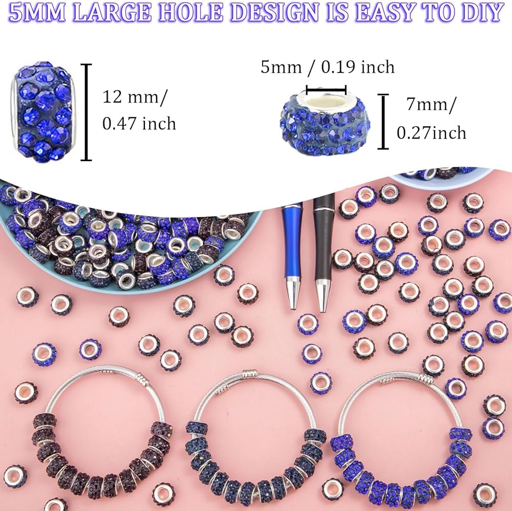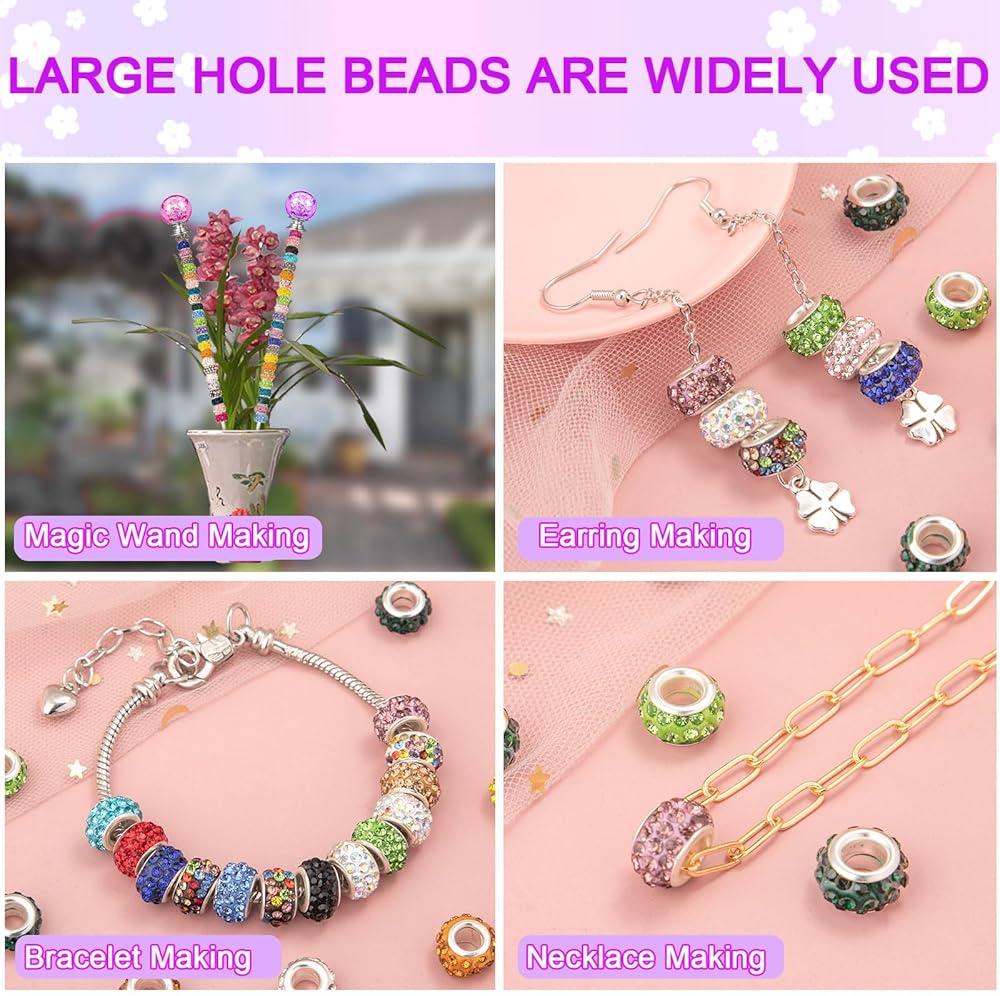 【Rhinestone European Beads Wide Use】 Perfect Size For Diy Jewelry Making, Bracelets,Necklaces, Earrings, Lampwork Spacer Beads, Anklets, Keychains, And Any Ornaments.Can Also Be Used As Lampwork Spacer Beads. Perfect Addition To Your Charm Bracelet And Necklace, These Diy Charms Beads Are Suitable For A Wide Range Of Jewelry Craft-Making Projects.
