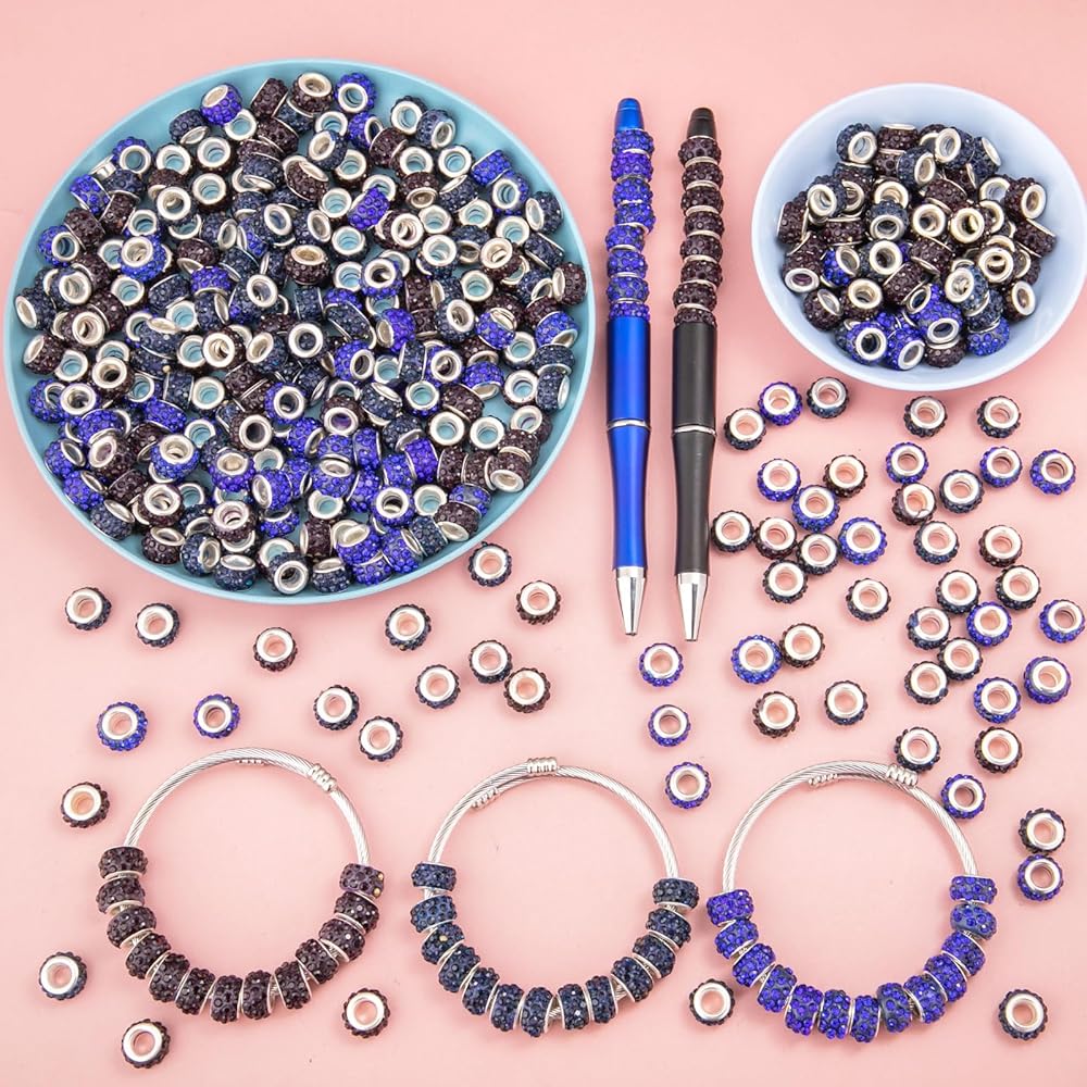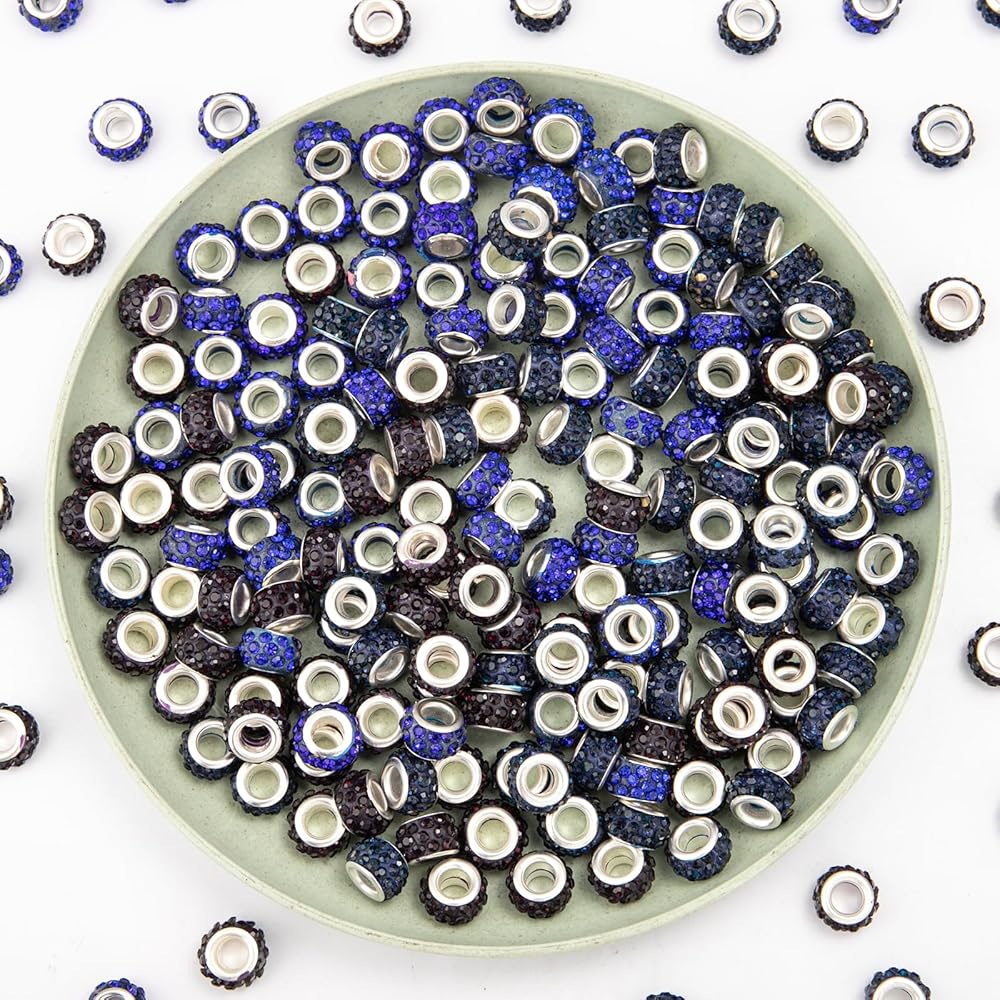 【Royal Blue Large Hole Beads】200Pcs 3 Color Rhinestone European Large Hole Beads with balanced quantity of each color. Large hole beads have a wide range of applications . The Surface Is Designed With Crystal Structure In A Bright And Pretty Color. Also, It Can Be An Entertaining Party Craft For women . It Can Also Be Used As Lampwork Spacer Beads.