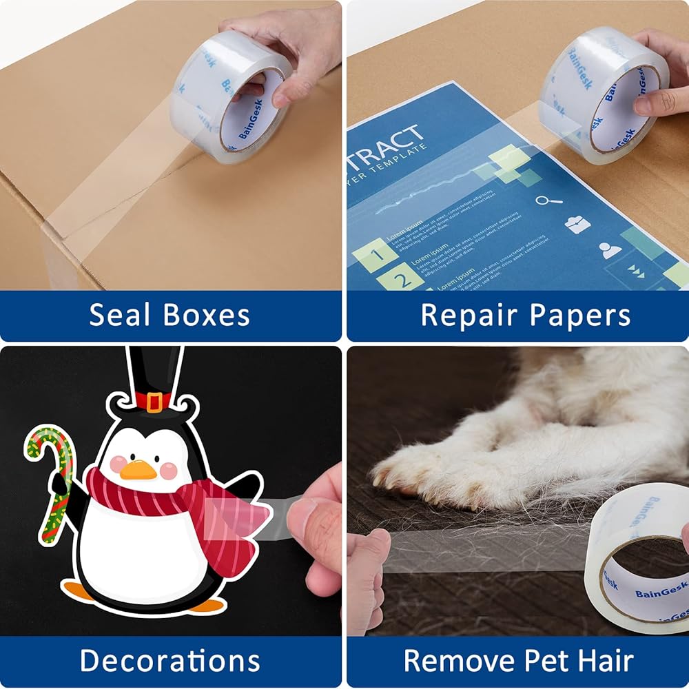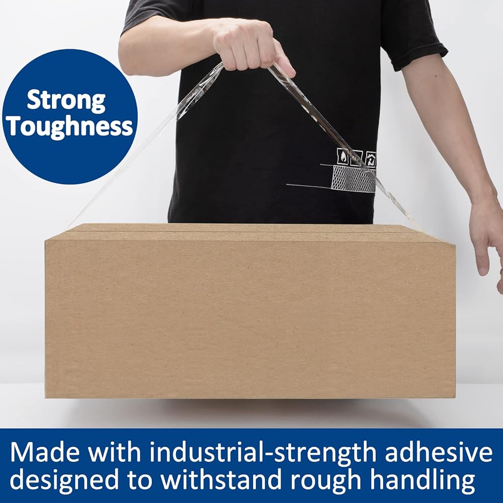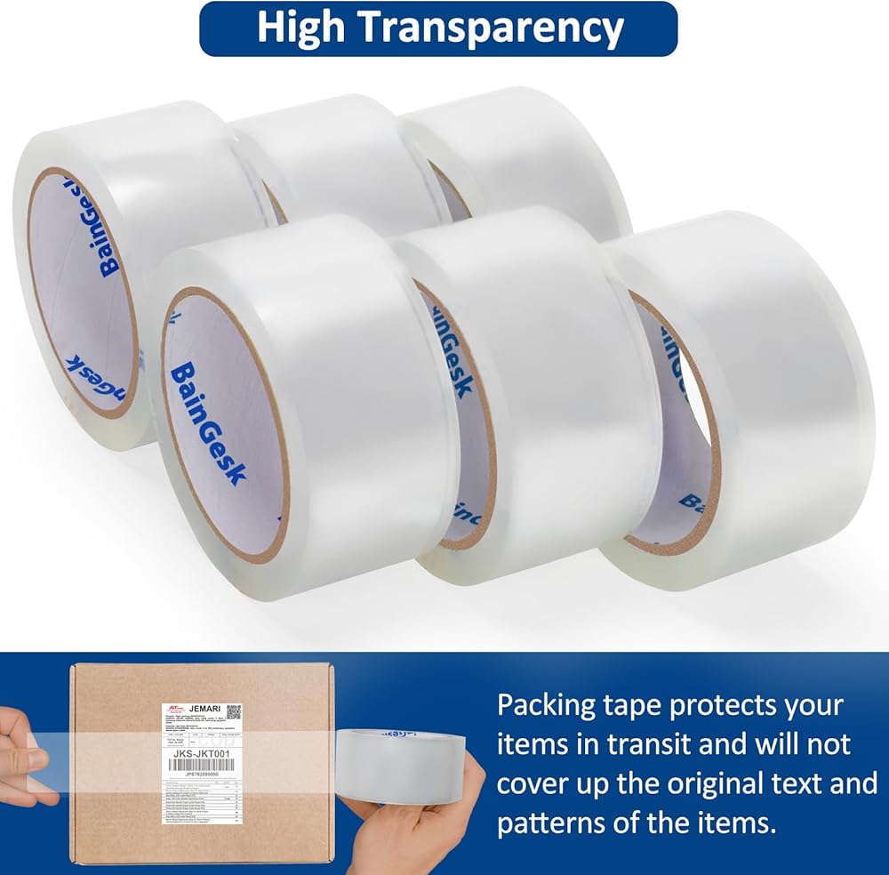 جودة ممتازة - الشريط السميك جيد جدًا في السماكة والمتانة، ولن يتمزق أو يتقشر بسهولة. يسمح تصميمه الشفاف بقراءة الملصقات والمسح الضوئي بسهولة ويلبي معايير البريد والشحن السريع والتعبئة.
