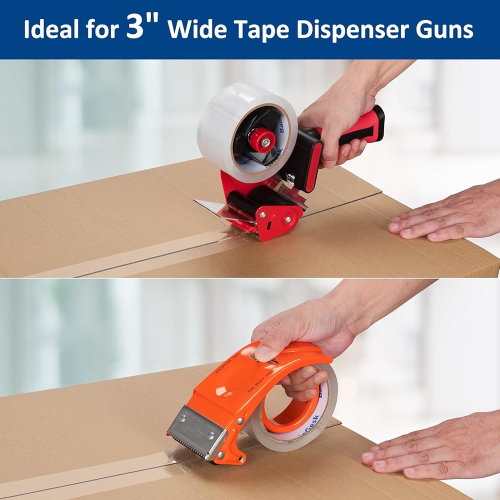سهل الاستخدام - شريط التغليف يملأ قلب 3 انش، هذا الشريط الشفاف مناسب لجميع موزعات الأشرطة القياسية ومسدسات الأشرطة. لن تنفصل لفافات شريط التغليف أو تتمزق أثناء الاستخدام، استخدمها بسهولة وتوفر وقت التعبئة.
