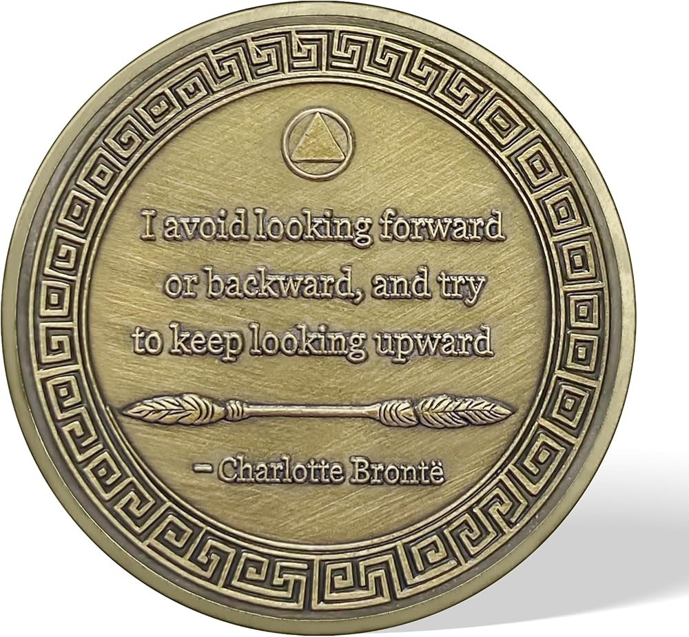 • Moving towards the Light: This sobriety coin recognises an individual's efforts and achievements during their eight months of sobriety. It is not only a symbol of celebration of a personal milestone, but also an ongoing encouragement. The coin inspires the holder to realise that true triumph lies in continued experimentation and indomitable spirit. It also helps recovering individuals maintain a positive and hopeful mindset as they continue their sobriety journey