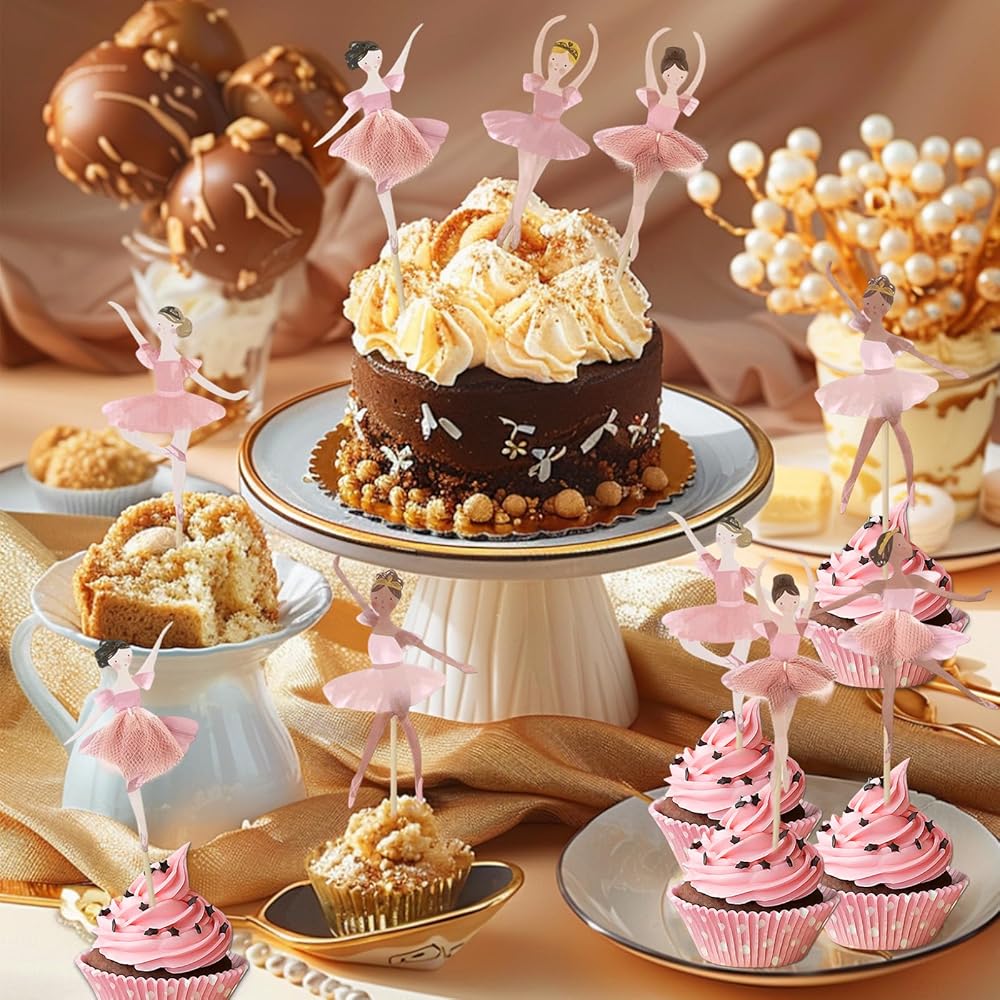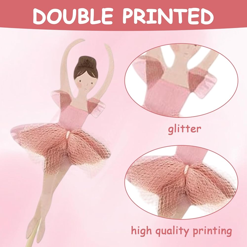 Cute and Charming Centerpiece: Ballerina party decorations adds a touch of brightness and sweetness to all your baked goods. Use this eye-catching addition to enhance the atmosphere of the party and let everyone be fascinated by it. Put the ballet birthday party decorations on the cake to form a beautiful centerpiece, just like dancing on the cupcakes, which is both attractive and cute.