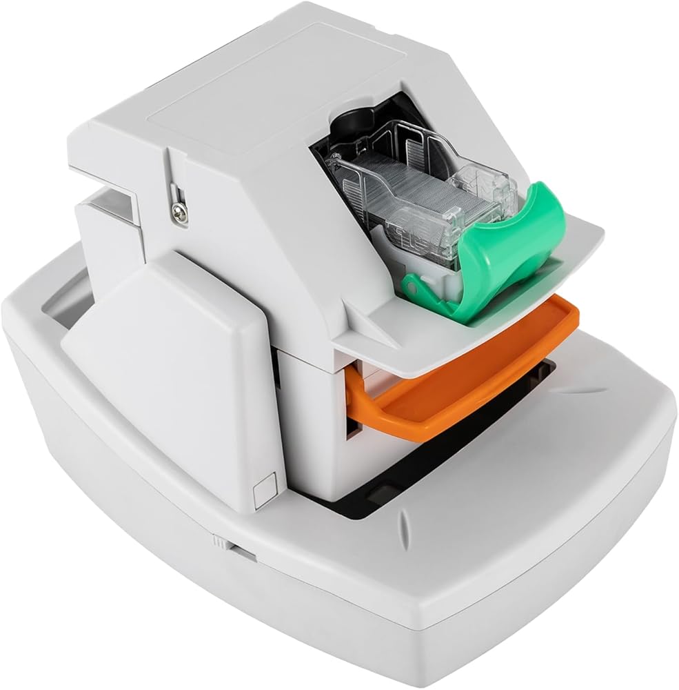 كفاءة عالية: يمكنها ربط ما يصل إلى 70 ورقة في المرة الواحدة، مما يحسن كفاءة العمل بشكل كبير ويوفر الوقت والطاقة. بالإضافة إلى ذلك، يمكن لخرطوشة الدباسة استيعاب ما يصل إلى 5000 دبوس، مما يضمن أنها يمكن أن تعمل بشكل مستمر وكفاءة لفترة طويلة.