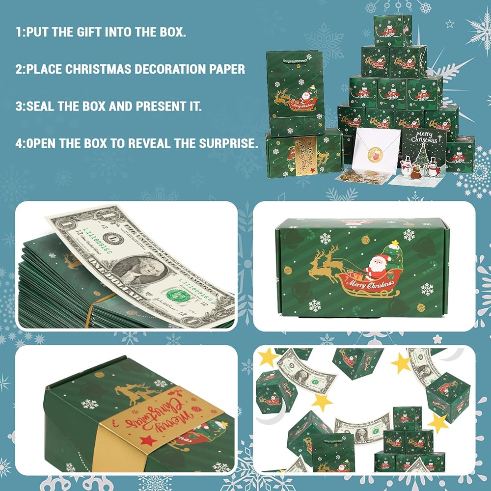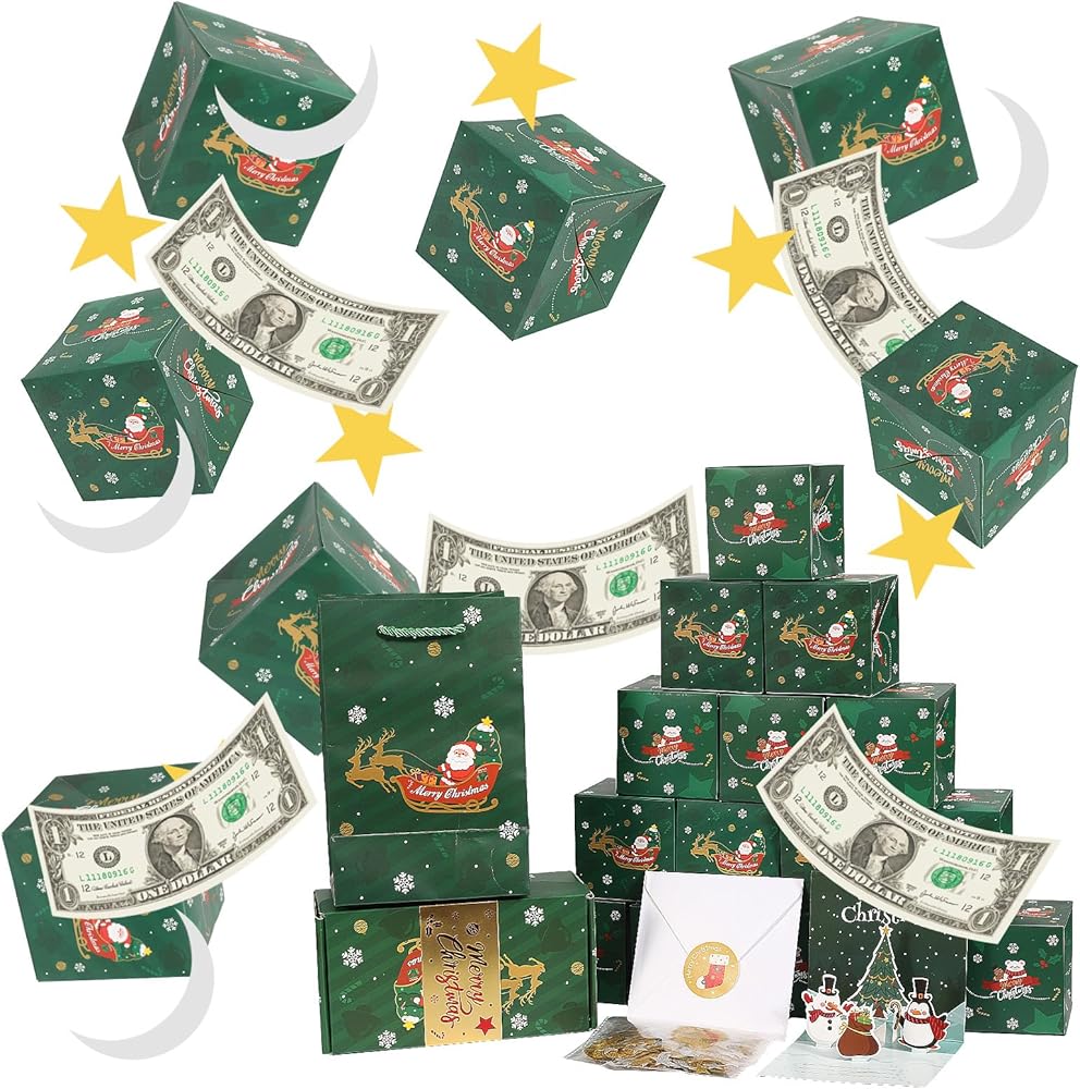 صندوق هدايا مفاجأة للانفجار مقابل المال مع بطاقة عيد الميلاد المنبثقة ، و 20 جهازًا قابلة للطي قابلة للطي ، و Gold Silver Confetti ، هدايا عيد الميلاد الإبداعية لديكور عيد ميلاد الحفلات (الأخضر)