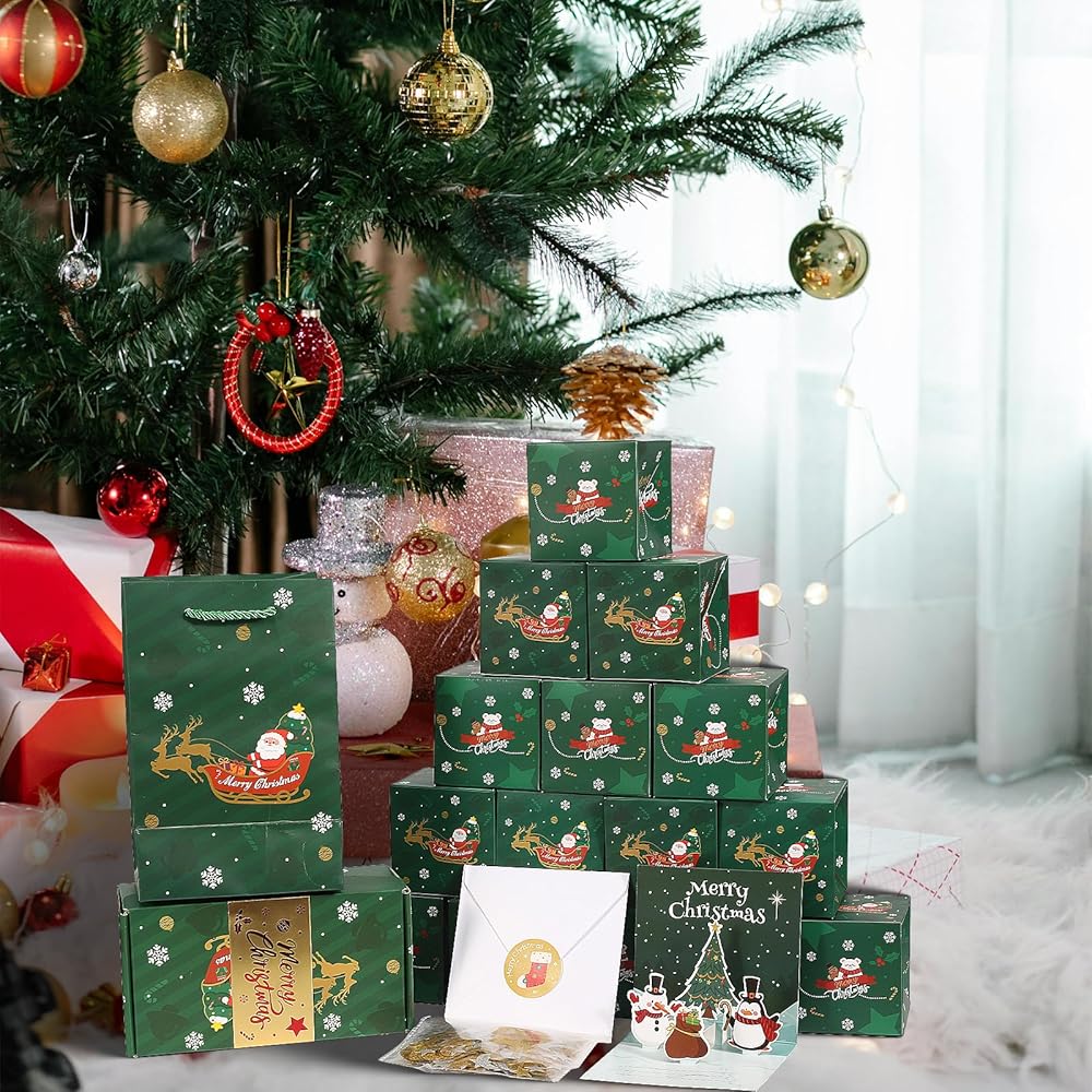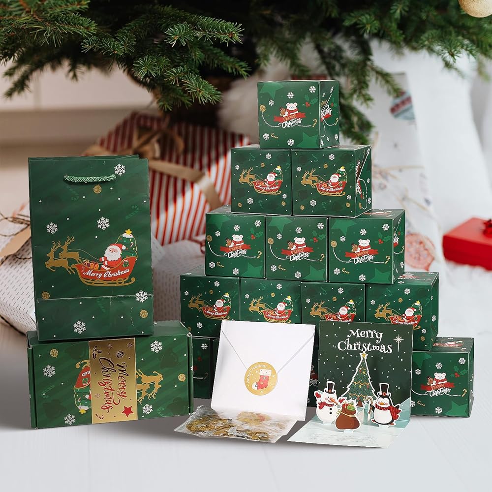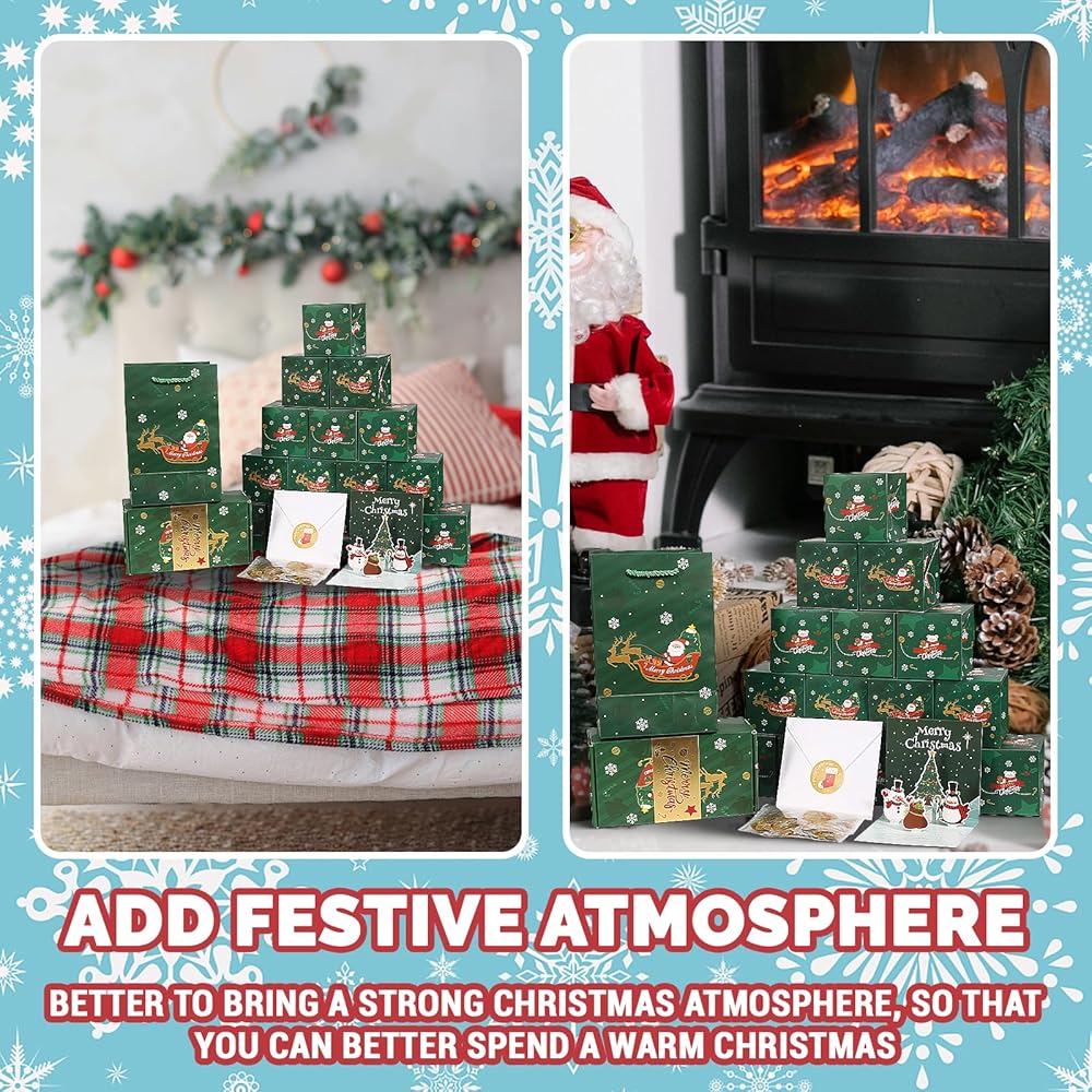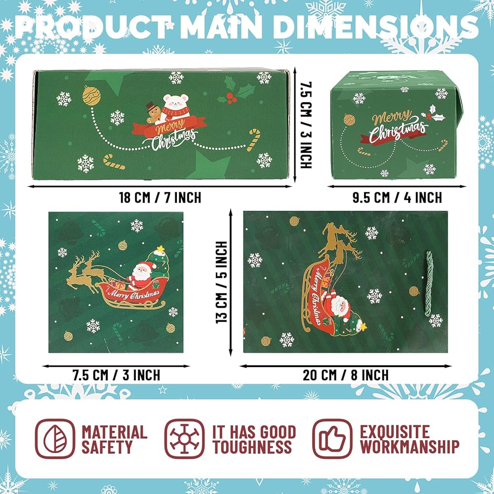【Szie والحزمة تشمل】 الحجم: مربع الانفجار الصغير حوالي 2.95* 2.95* 2.95 بوصة ؛ صندوق الهدايا حوالي 7.48*3.94*3.15 بوصة ؛ حقيبة الهدايا حوالي 7.87*4.72*3.54 بوصة. تشمل الحزمة: مربع الانفجار الصغير*20 ، صندوق الهدايا*1 ، حقيبة الهدايا*1 ، بطاقة عيد الميلاد*1 ، Envivor*1 ، ملصق*1 ، النجوم والحلويات*1.