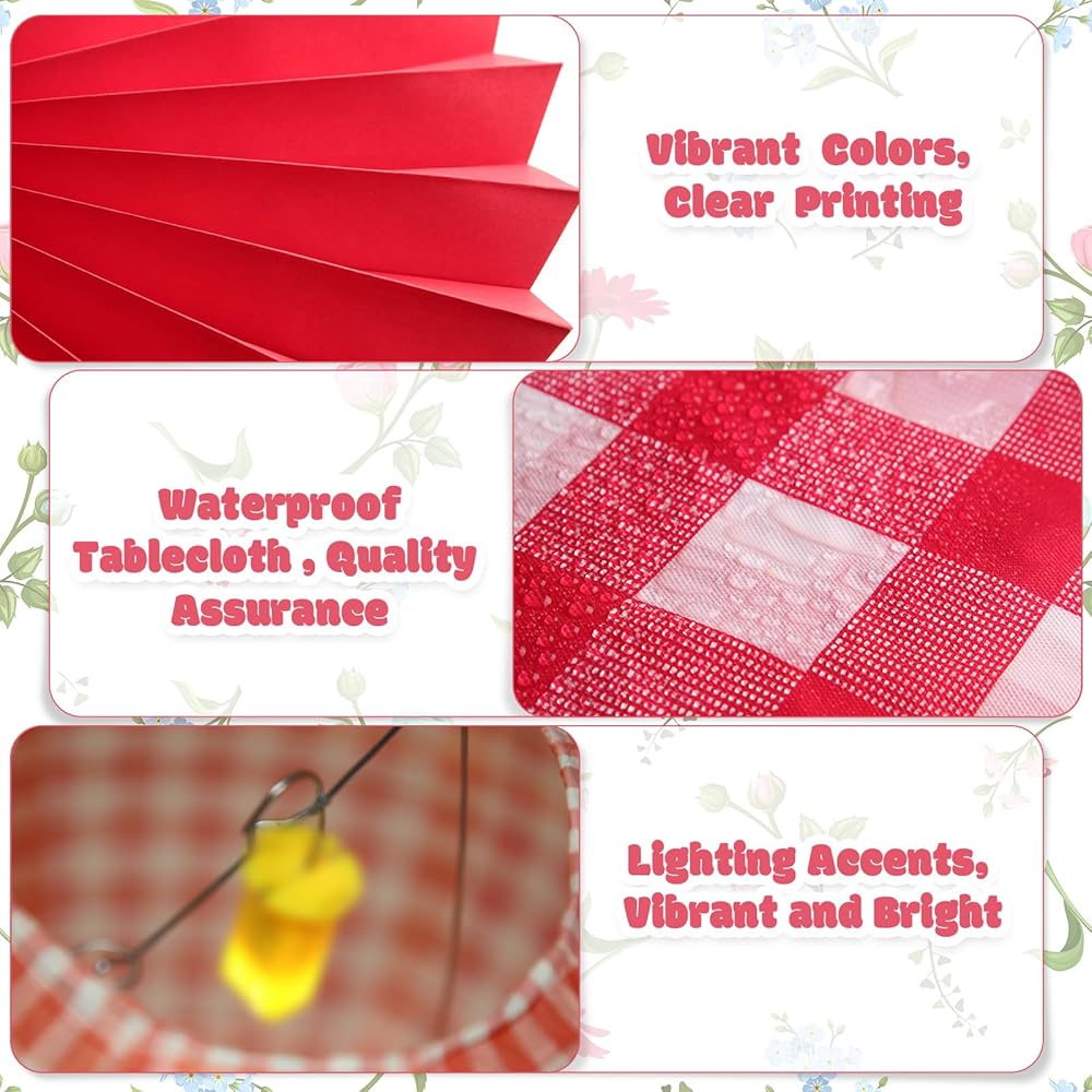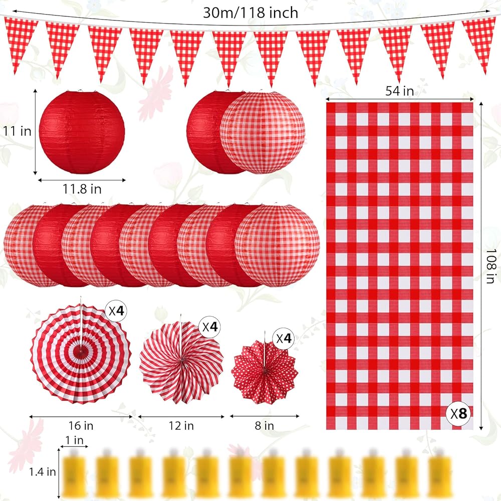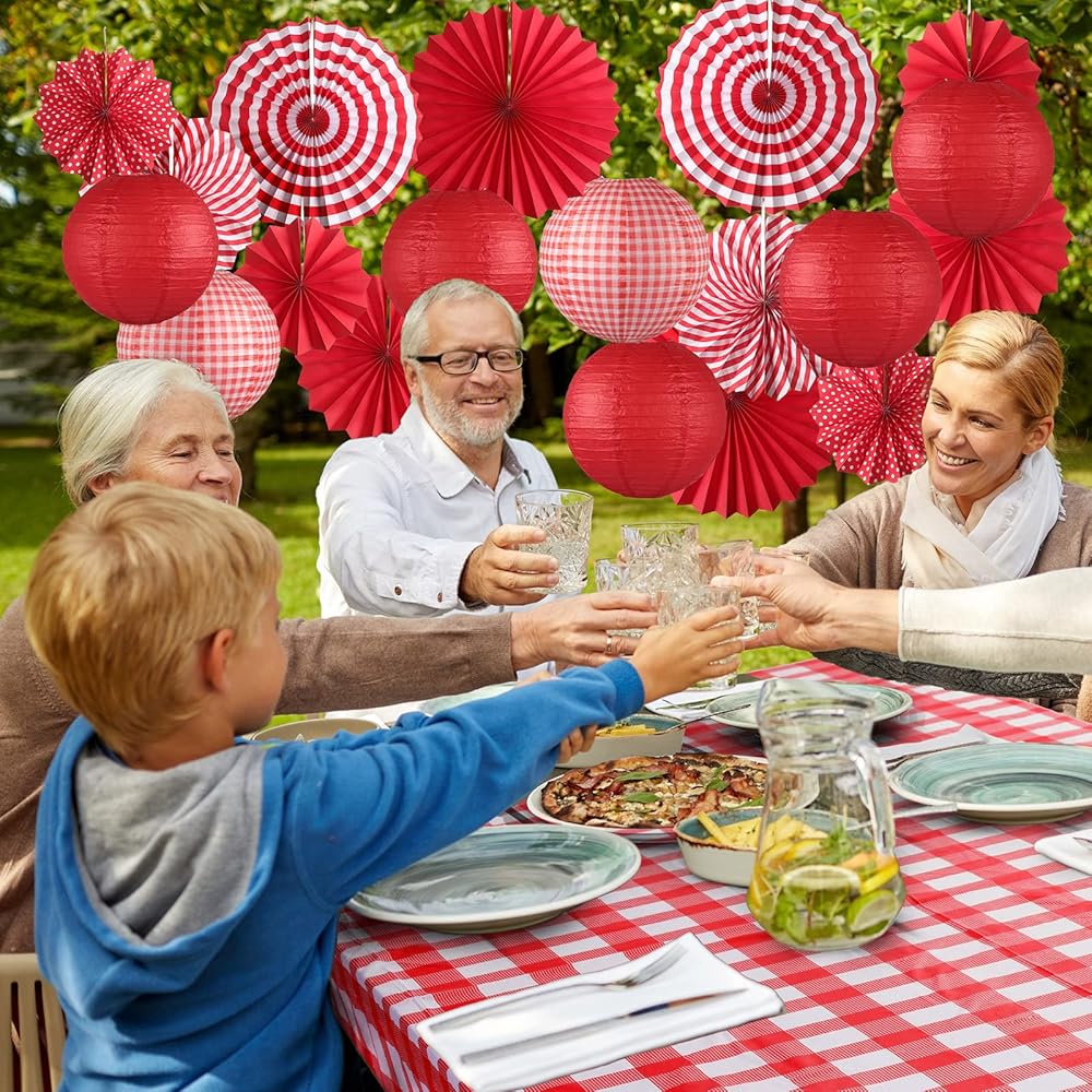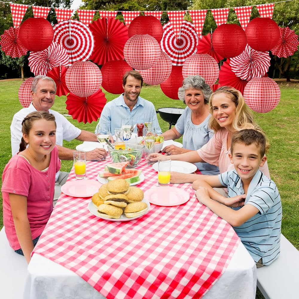 Moukeren 33 PCS Picnic Party Decorations مجموعة الورق الفوانيس الورقية راي غينغهام راية بانر مع مراوح ورق معلقة من أجل الكرنفال Picniv BBQ Party Supplies