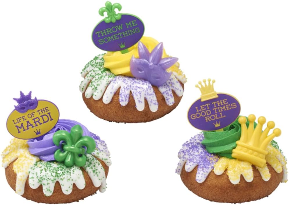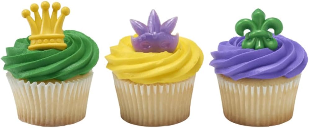 Mardi Gras Cupcake Rings Cake Toppers Decorations Decorations Party Party - 24 قطعة