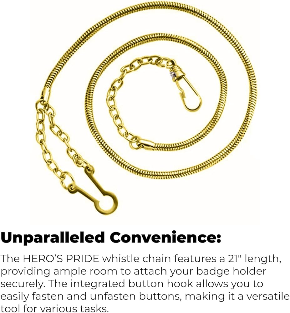 WHISTLE CHAIN BUTTON CLASP: We understand that law enforcement requires accessories that are durable to endure even the toughest duties. That is why we add incredible craftsmanship to every product in our lineup. This Whistle Chain with Button Hook feature is expertly made to be easily accessible and durable for active duty use.