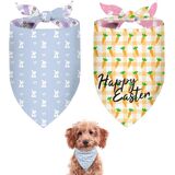 Dog Bandana Reversible 2 Pack Small, Easter Pet Bandanas for Dogs Pink Bunny Carrot Floral Cute Adjustable Triangle Holiday Scarves for Small Medium Boy Girl Dogs