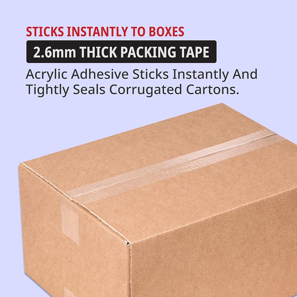 شريط صندوق عالي التحمل - مثالي لجميع احتياجات التعبئة والتغليف والشحن الخاصة بك، هذا الشريط بسمك 1.6 مل وشفاف، مما يجعله سهل الاستخدام ومثالي لوضع العلامات وتحديد الصناديق أو تغليف الهدايا