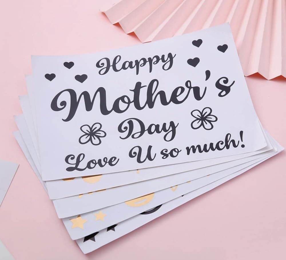 [Quantity] The package comes with 12 sheets of happy Mother's Day stickers for balloons in 6 assorted styles, and each style comes with 2 sheets. A wide range of quantities and colors can meet your diverse needs.
