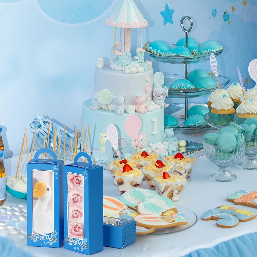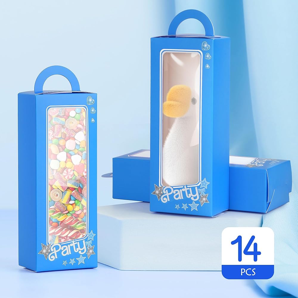 14 حزمة زرقاء الحفلات لصالح الصناديق-أكياس حلوى معالجة مع نافذة شفافة لحفلات أعياد الميلاد ، والاستحمام الأطفال ، والأحداث التي تحمل موضوع الأمير ، وأكثر من ذلك-سهلة تجميع صناديق هدايا قوية