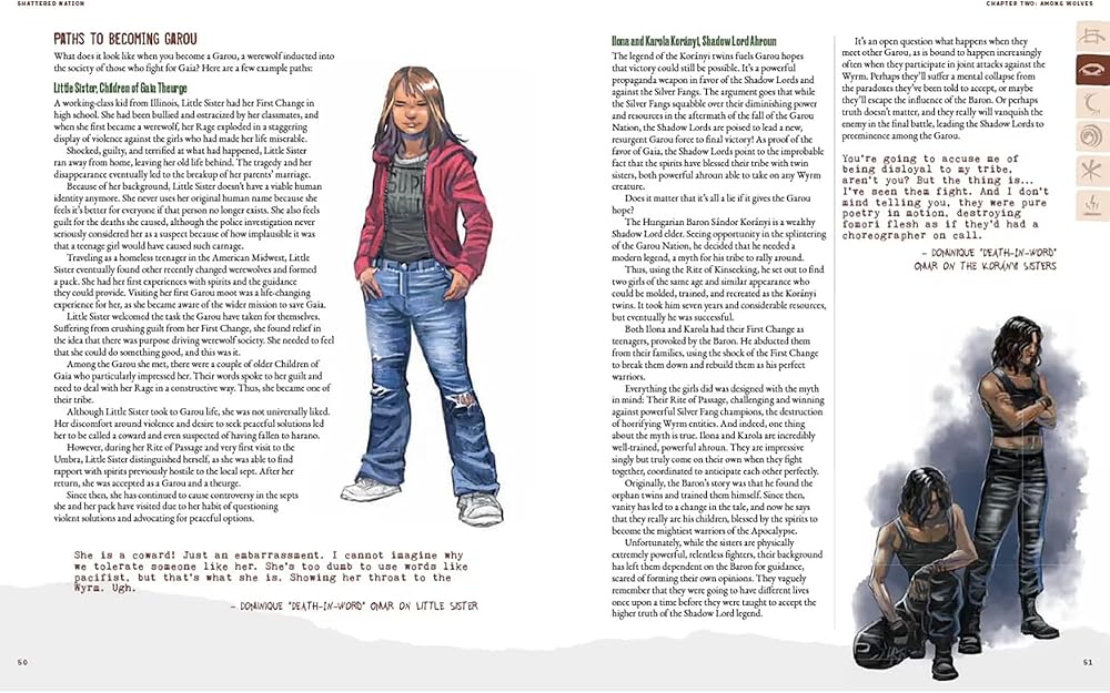 WEREWOLF: THE APOCALYPSE 5E RPG - SHATTERED NATION SOURCEBOOK - The Society of the Garou Unveiled. Once the Garou tribes were united in one mighty Nation, ready and willing to fight for Gaia whenever and wherever they needed to. Now as the Apocalypse rages, the mightiest bulwark that should have defended against it is in tatters. The Garou Nation lies shattered. Shattered Nation is a setting book for Werewolf, detailing the ruins of the Garou Nation and how they can be used concretely in Werewolf stories, but it also details opportunities the players' pack has in Garou politics, to leverage their Renown for power and influence. Mature Advisory: contains graphic and written content of a mature nature, including violence, sexual themes, and strong language. Reader discretion is advised.