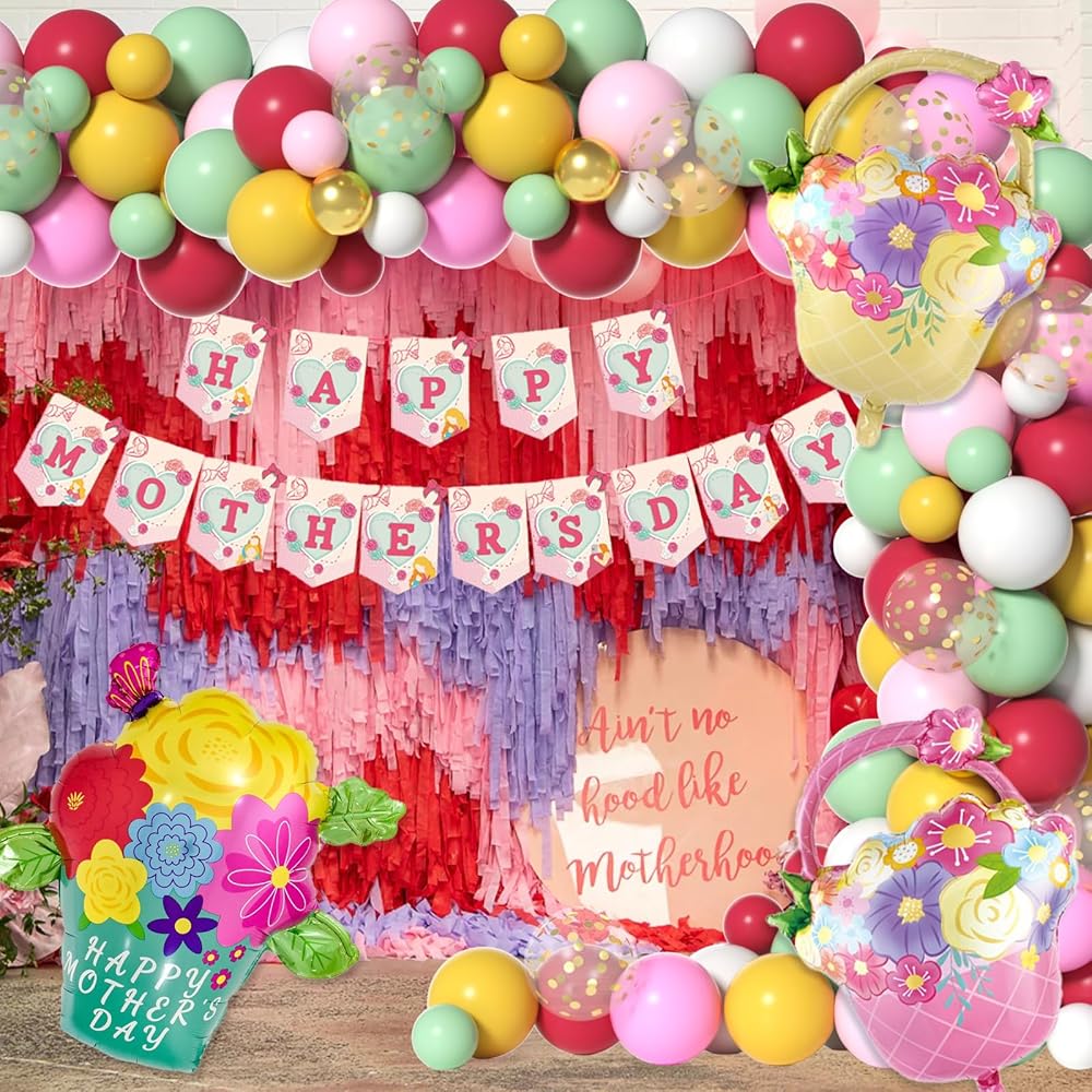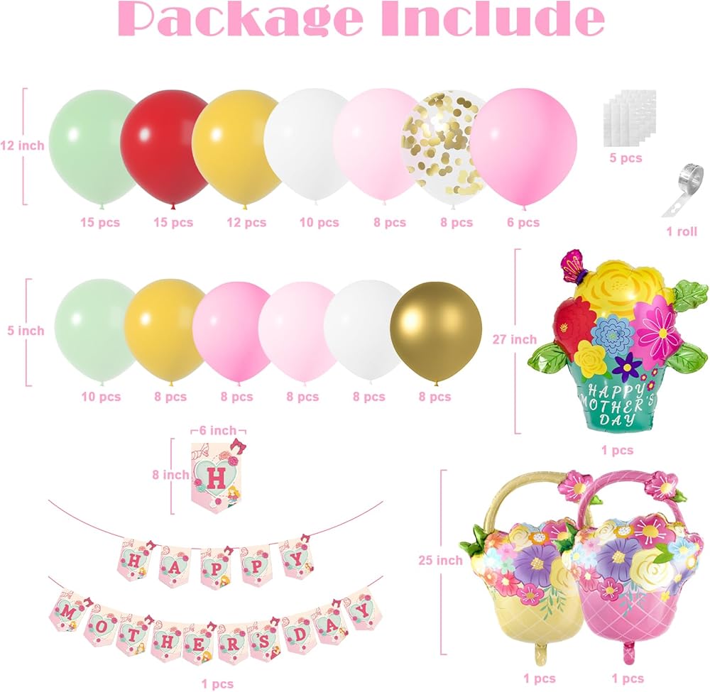 • مواد عالية الجودة: مجموعة أغطية البالون في يوم أمهاتنا مصنوعة من بالونات اللاتكس عالية الجودة ، وهي متينة وطويلة الأمد. البالونات المحببة لامعة وجذابة ، مما يضيف لمسة من الأناقة إلى زينة الحفلات الخاصة بك.